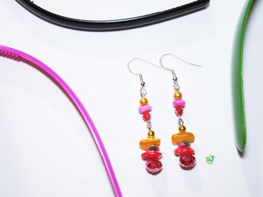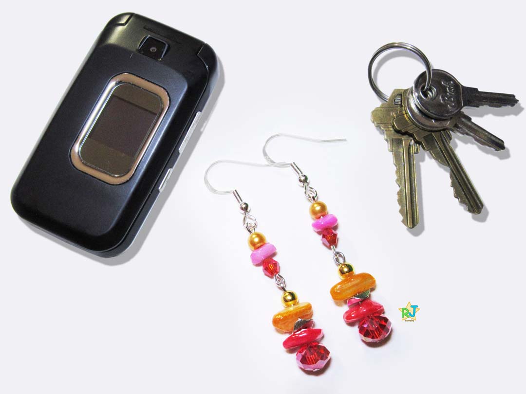 Materials: Red, Pink & Beige Yellow Gemstones, Gold Bead, Lt Orange Pearl & Red Crystal Stones