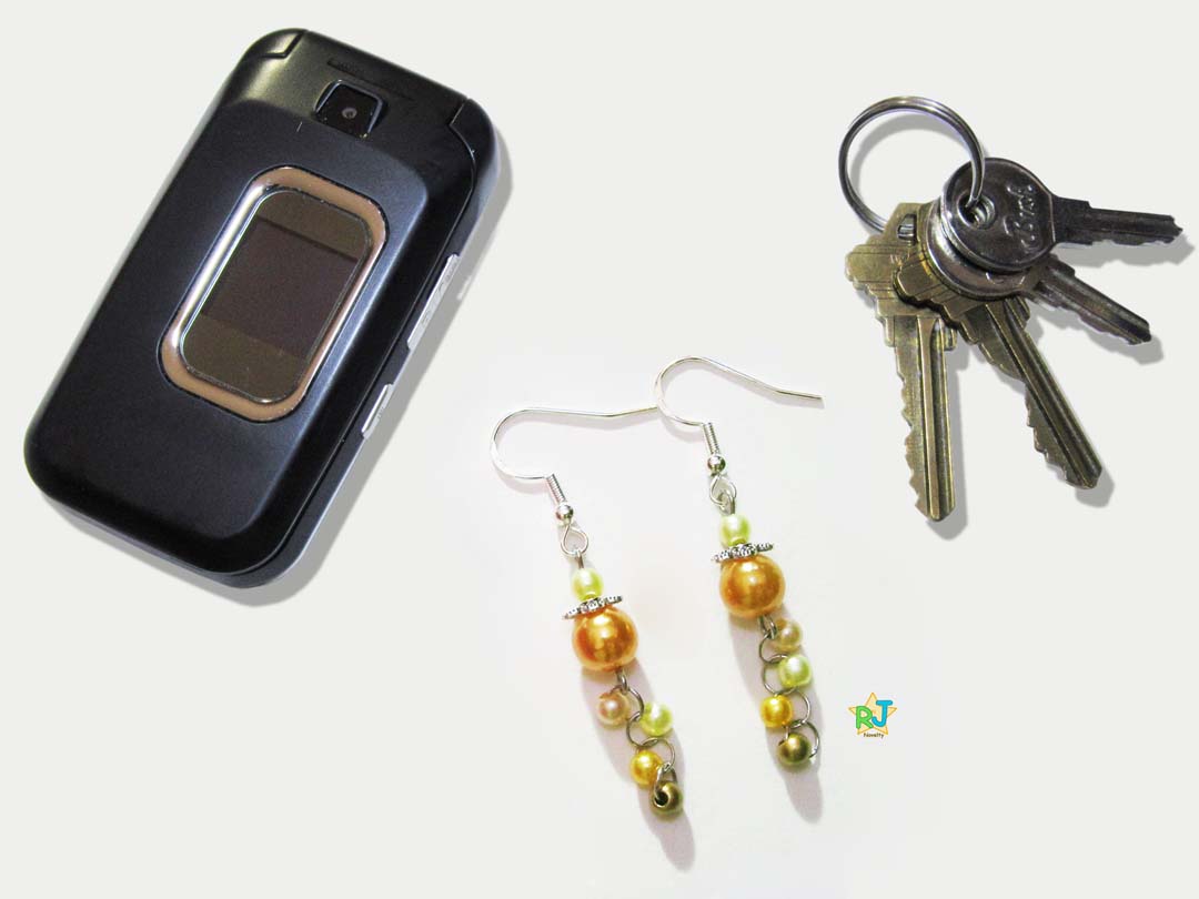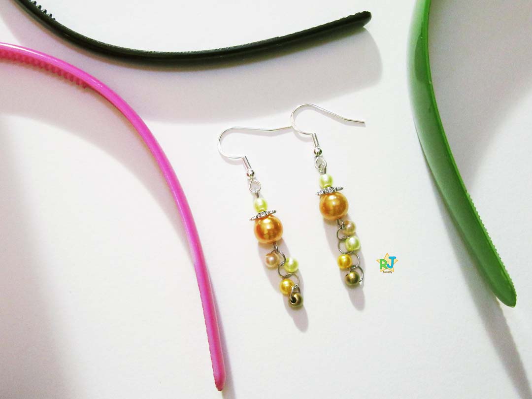 Materials: 2 Gold Color Pearls & 4 Yellow Color Pearls & A Silver Floral Decor Bead