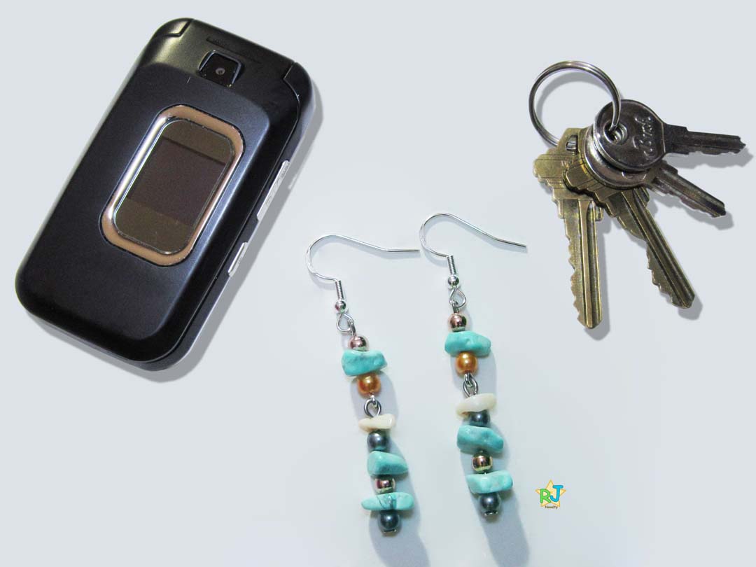 Materials: Turquoise Gemstones & Dk Gold Beads with Lt Orange & Grey Pearls