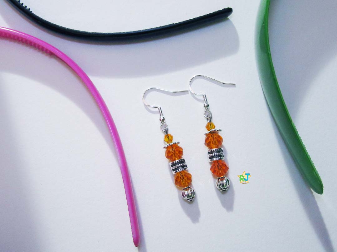 Materials: Orange & Orange Crystals Stones & 3 Different Style Silver Decor Beads