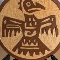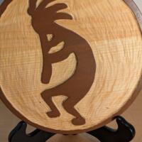 Another piece of artwork from the ‘Glyphs: Ancient Graffiti” Series, that can be used as wall decor or table display. It is 8" diameter basswood, stained & hand-carved, sealed in satin polyurethane that features a stylized roadrunner, typically associated with Southwestern or Native American folk art. This piece is signed, dated & numbered by eWilliej.art on the back.