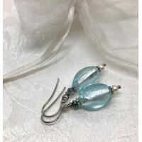 The earrings are made from Roman glass, freshwater pearls and gold tone spacer beads.