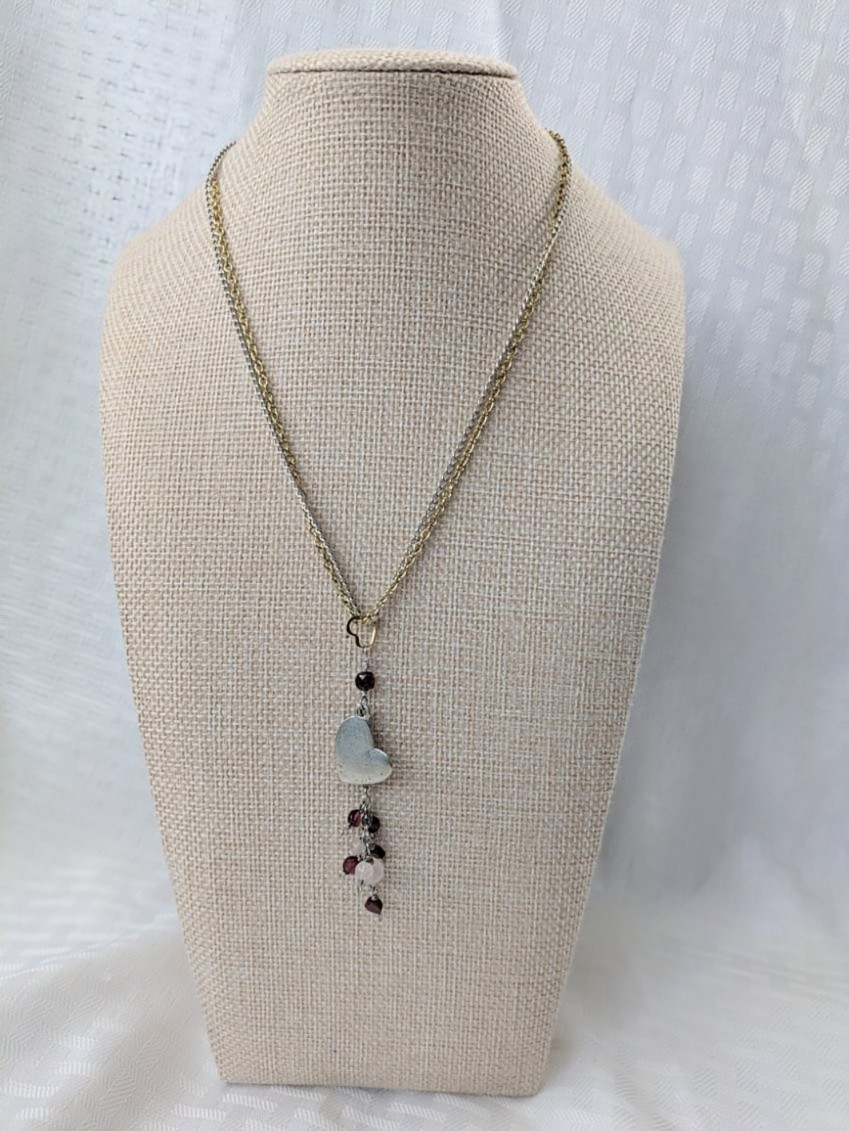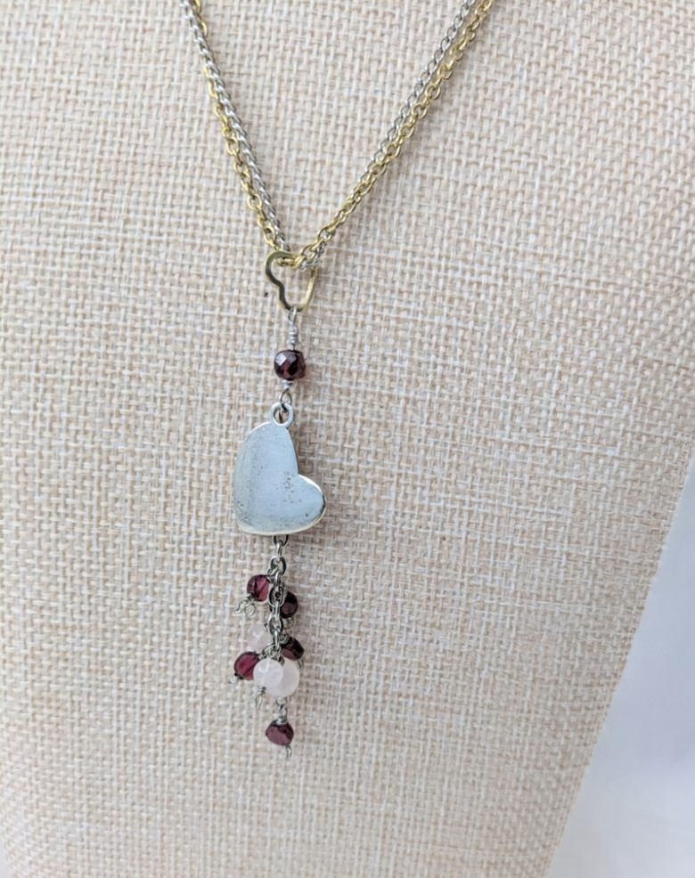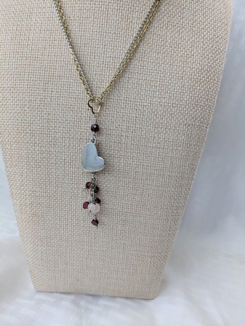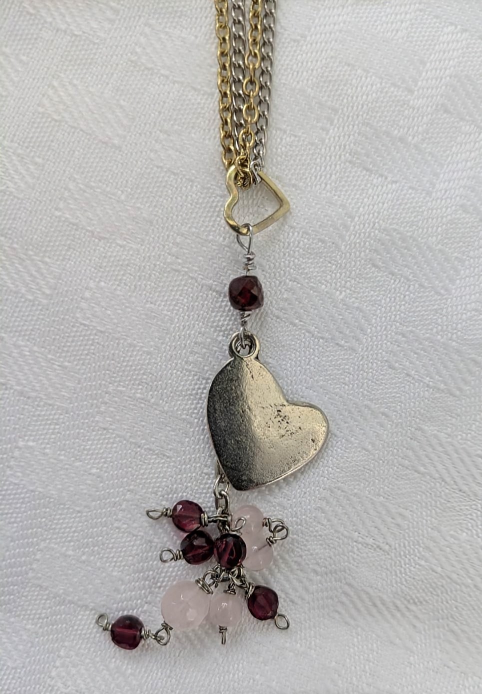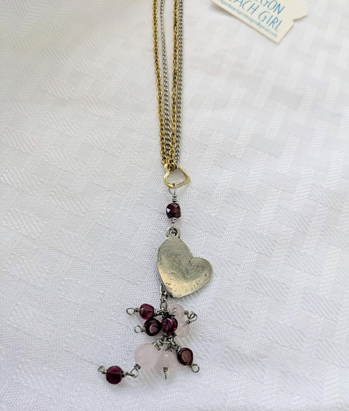 Romantic Heart Necklace with Garnet and Rose Quartz from Oregon Beach Girl!