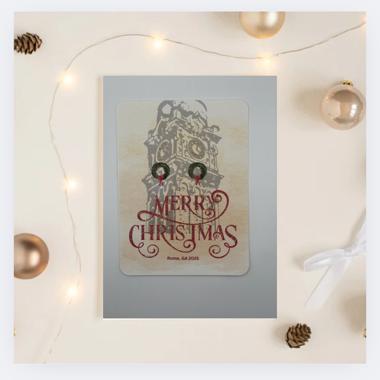 Rome GA Clocktower landmark dressed up in Christmas style.