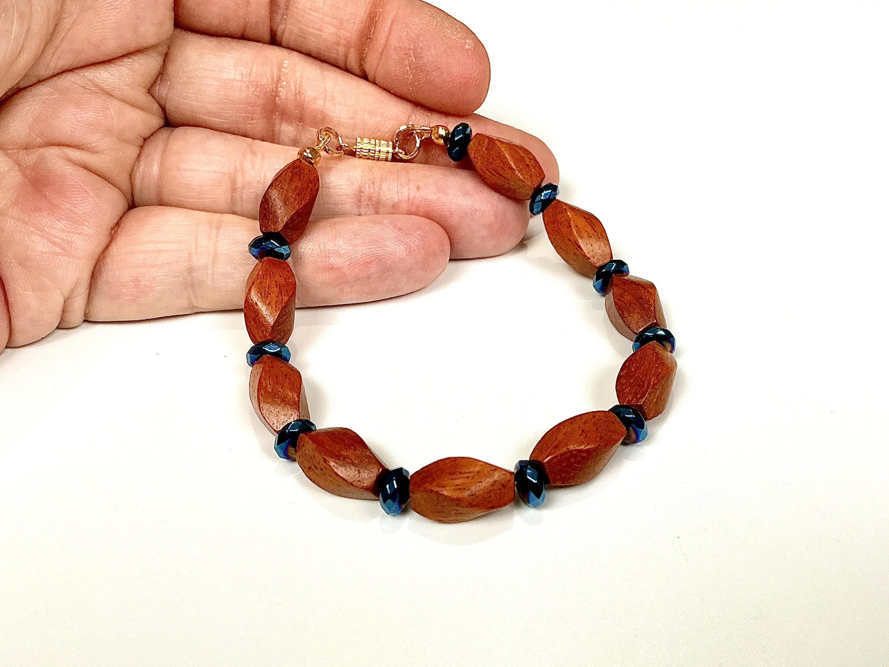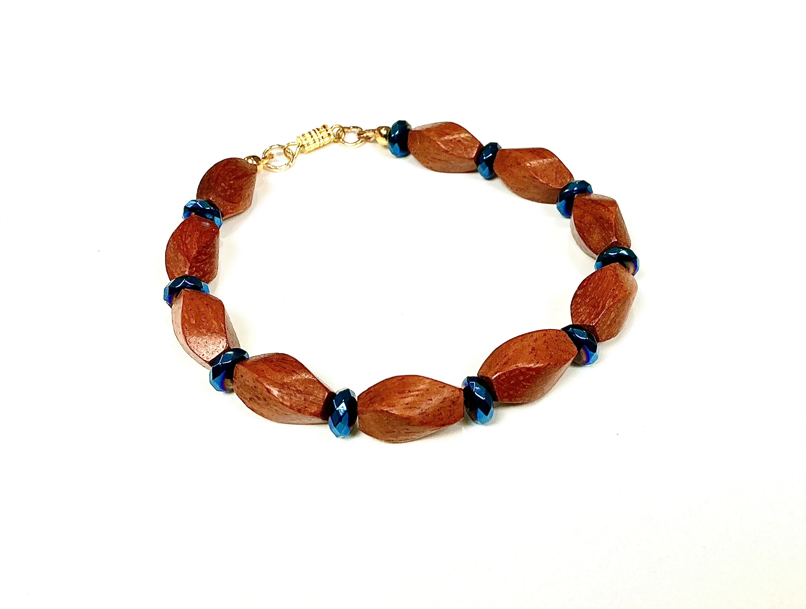 Redwood Twist Beaded Bracelet with Blue Hematite Spacers