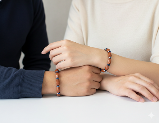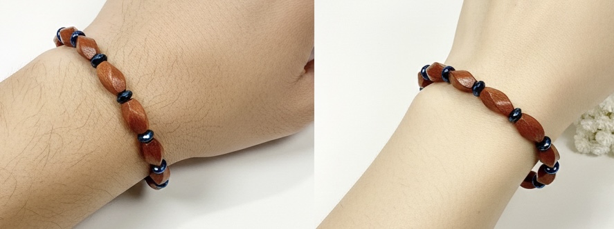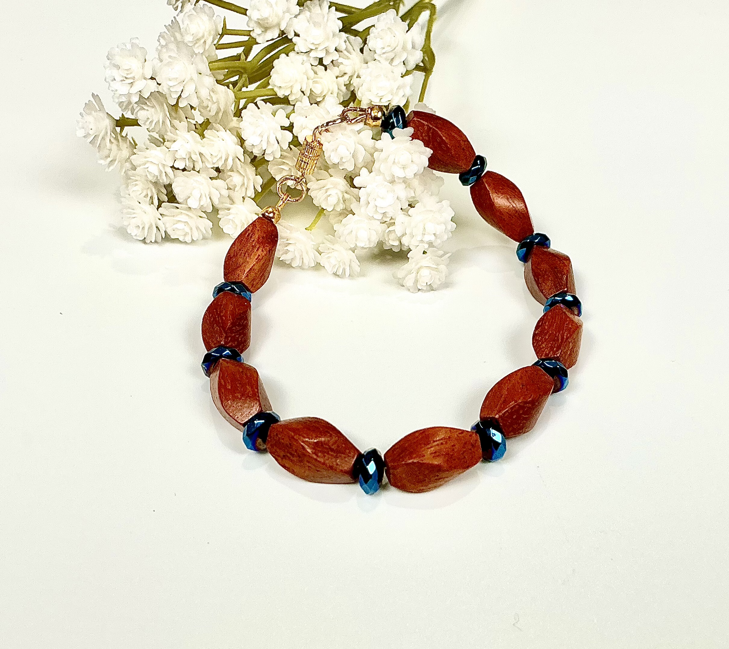 • Natural Materials: Crafted with high-quality polished redwood and blue hematite beads.