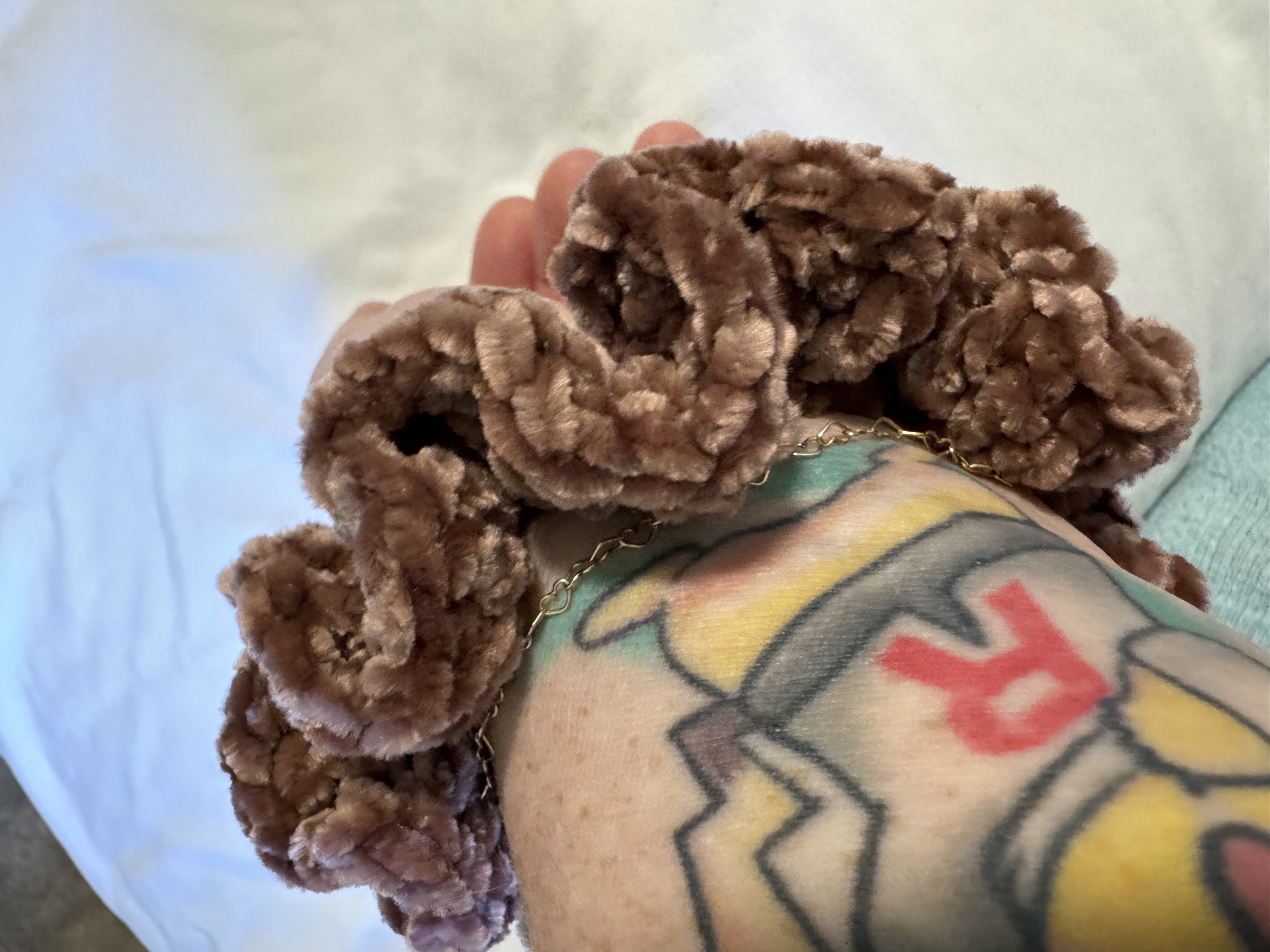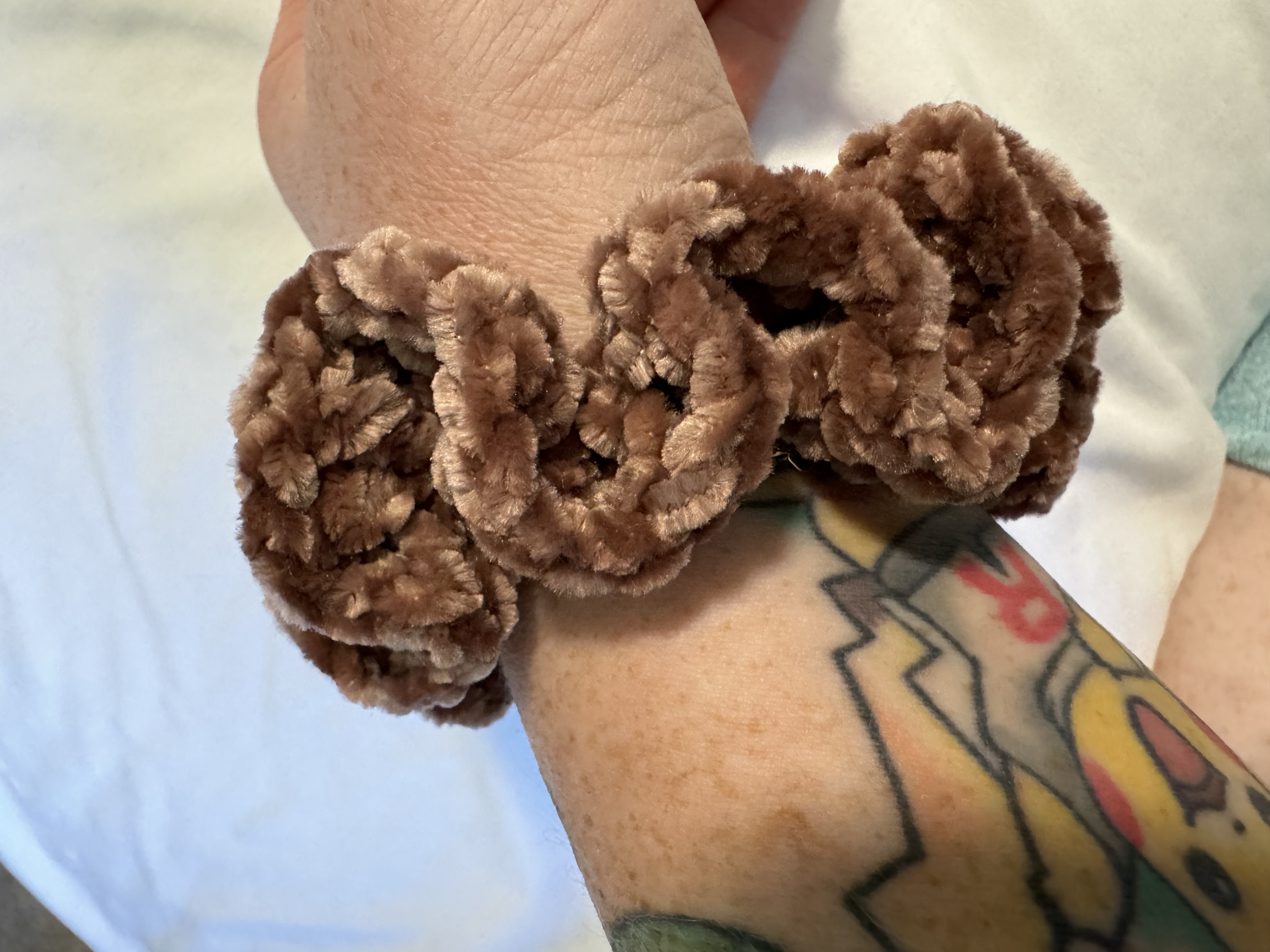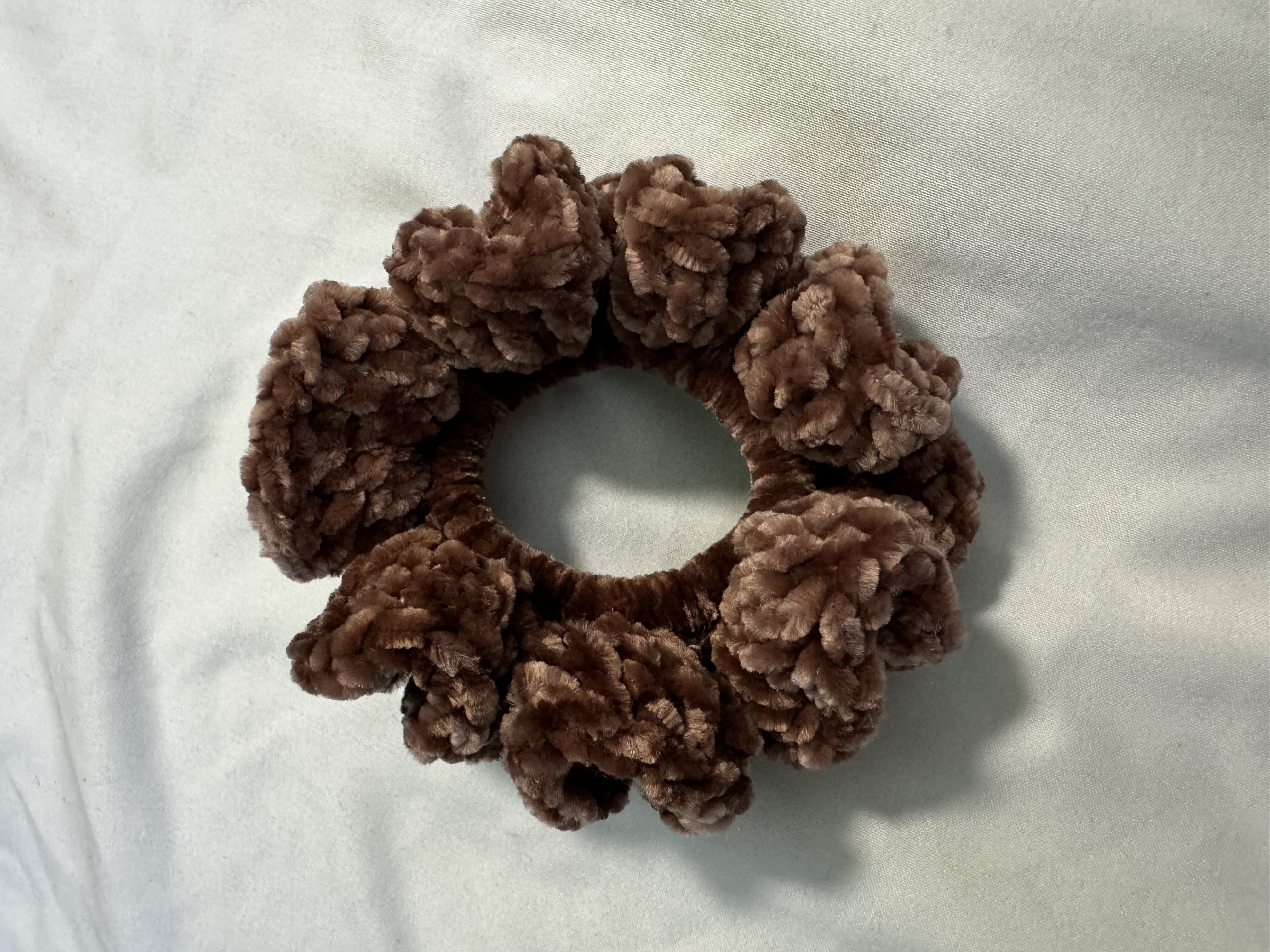Treat your hair to the luxurious softness of the Rosy Mocha Velvet Scrunchie, crafted from Burnat velvet yarn in a beautiful mocha shade with subtle pink undertones. This scrunchie offers a gentle hold that won’t tug or damage your hair, making it perfect for everyday wear or adding a touch of elegance to any outfit. With its plush texture and rich color, it’s both stylish and comfortable, ideal for securing a ponytail or wearing as a chic accessory on your wrist.