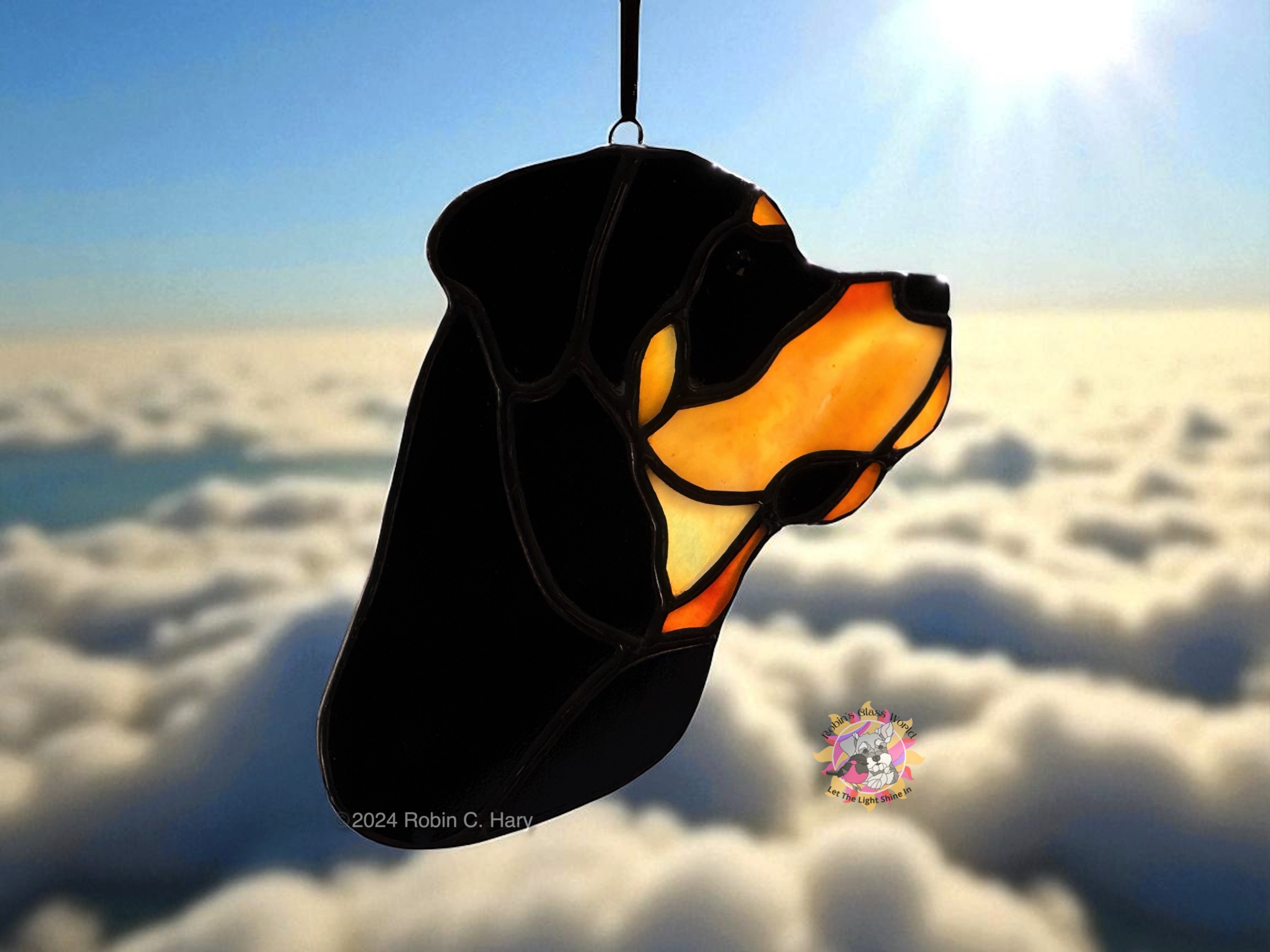 Calm, confident, and courageous the Rottweiler protects his family- my stained glass ornament has captured this brilliantly. However, just underneath in the twinkle of the crystal eye, lies the goofy, downright silliness that endear Rottie's to their loved ones.
