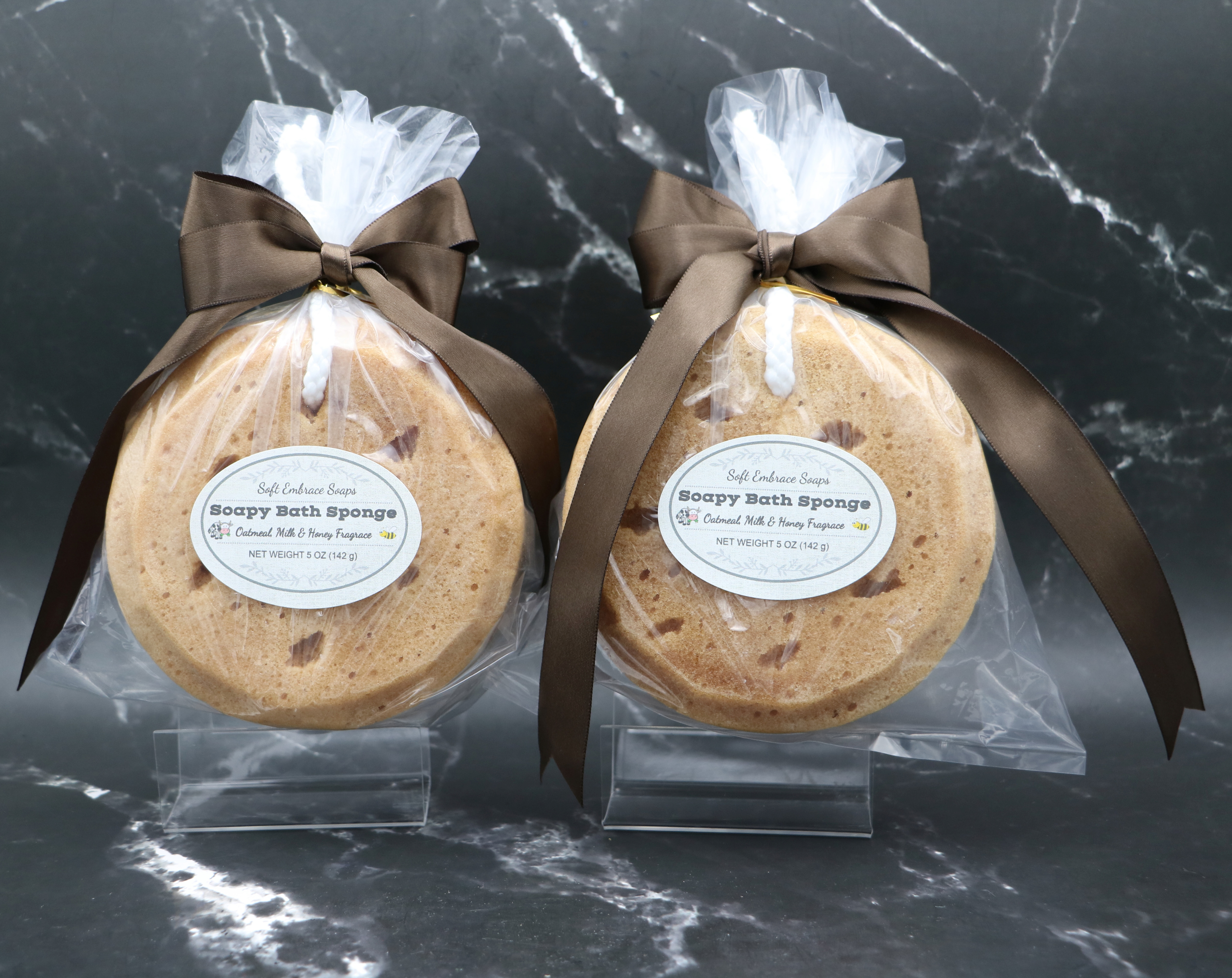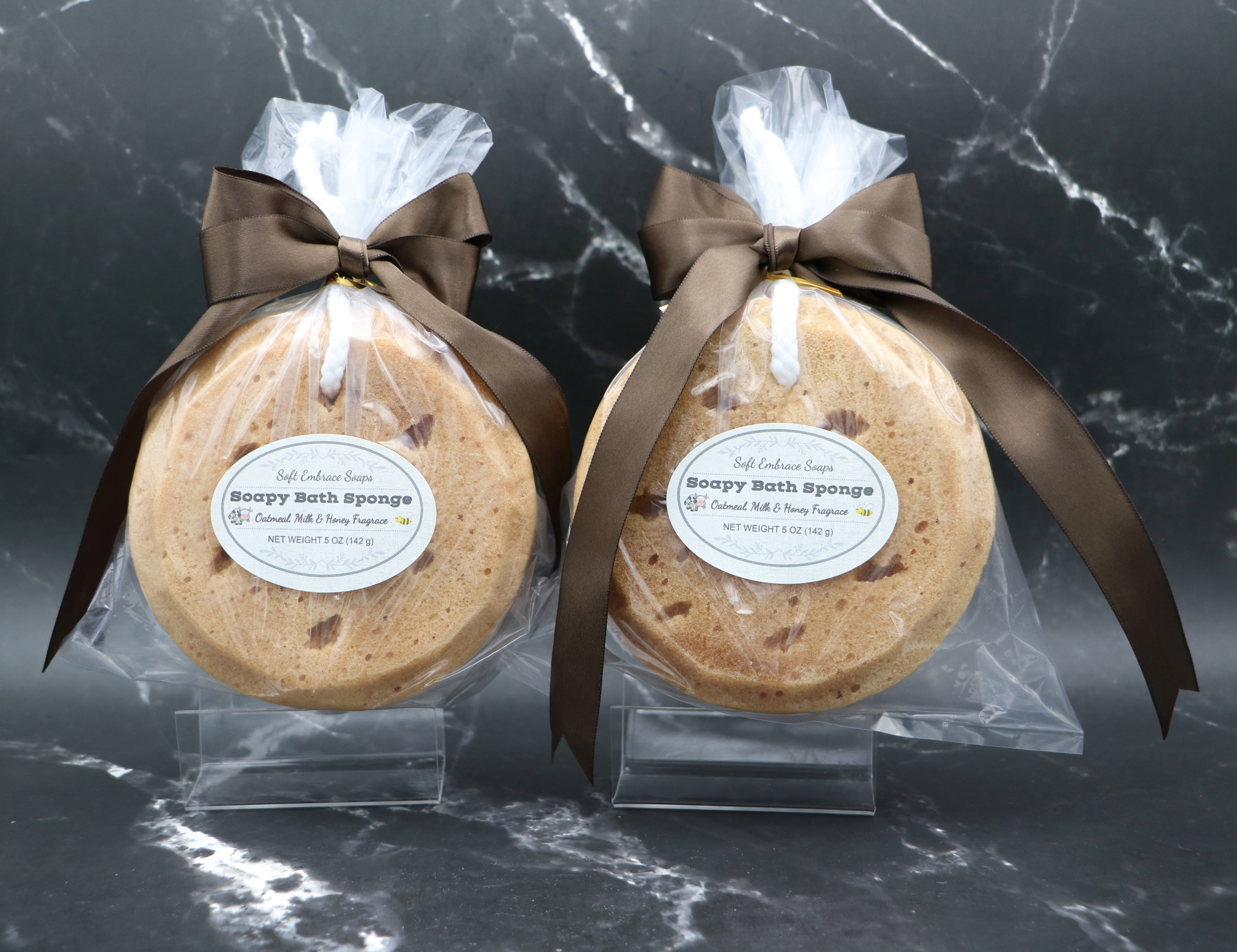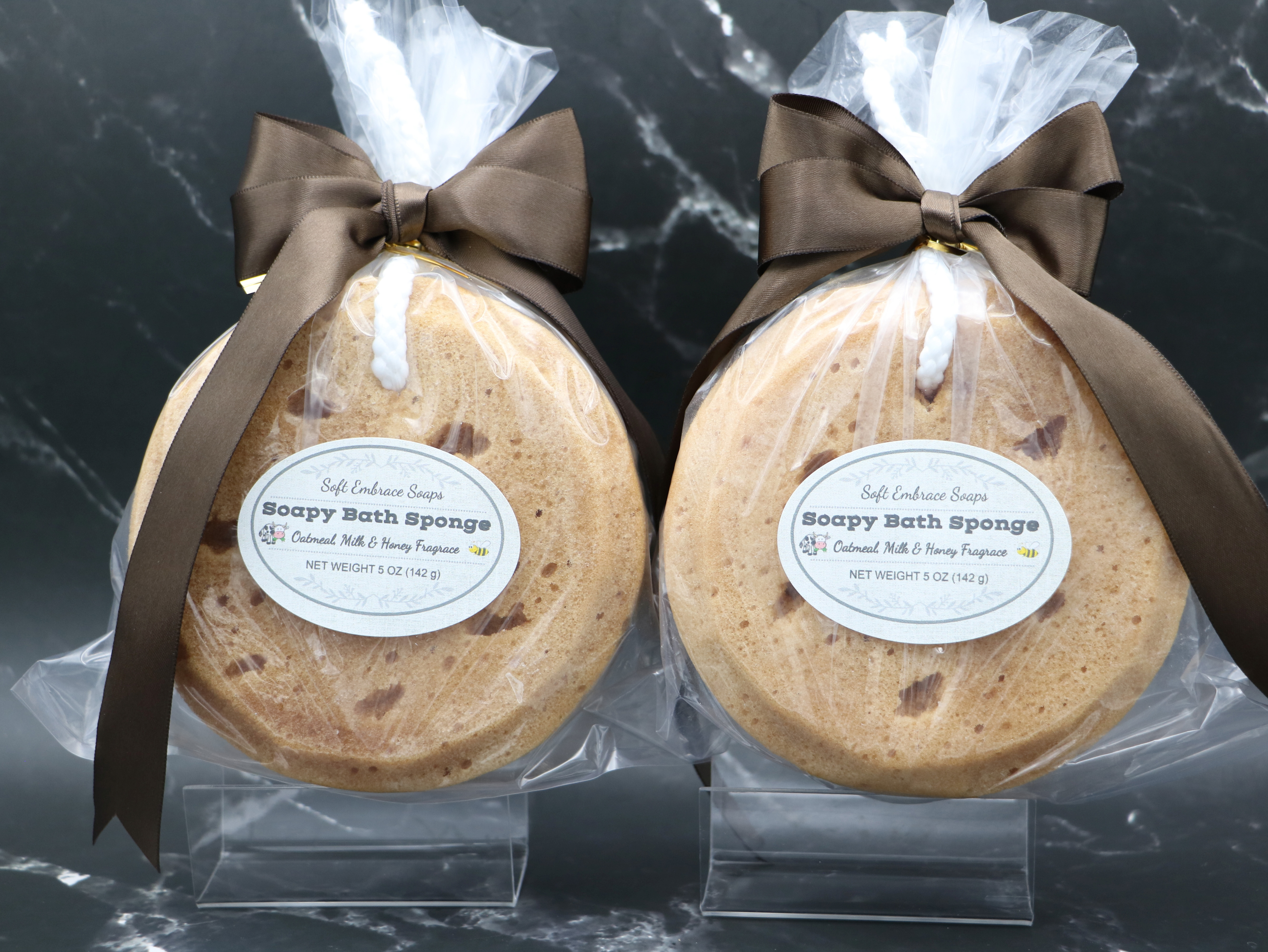 This plush bath sponge is scented with a very popular fragrance oil: Oatmeal, Milk & Honey. This scent is described as a delicious blend of pure, sweet honey, creamy milk, & warm oats. Bringing back memories of cold winter mornings while mom was making breakfast. Soapy Bath Sponges envelop your skin in a rich, foam-filled lather that feels silky smooth & luxuriously soft, while the aromatic notes of the scented oils awaken your senses & elevate your bathing ritual.