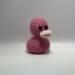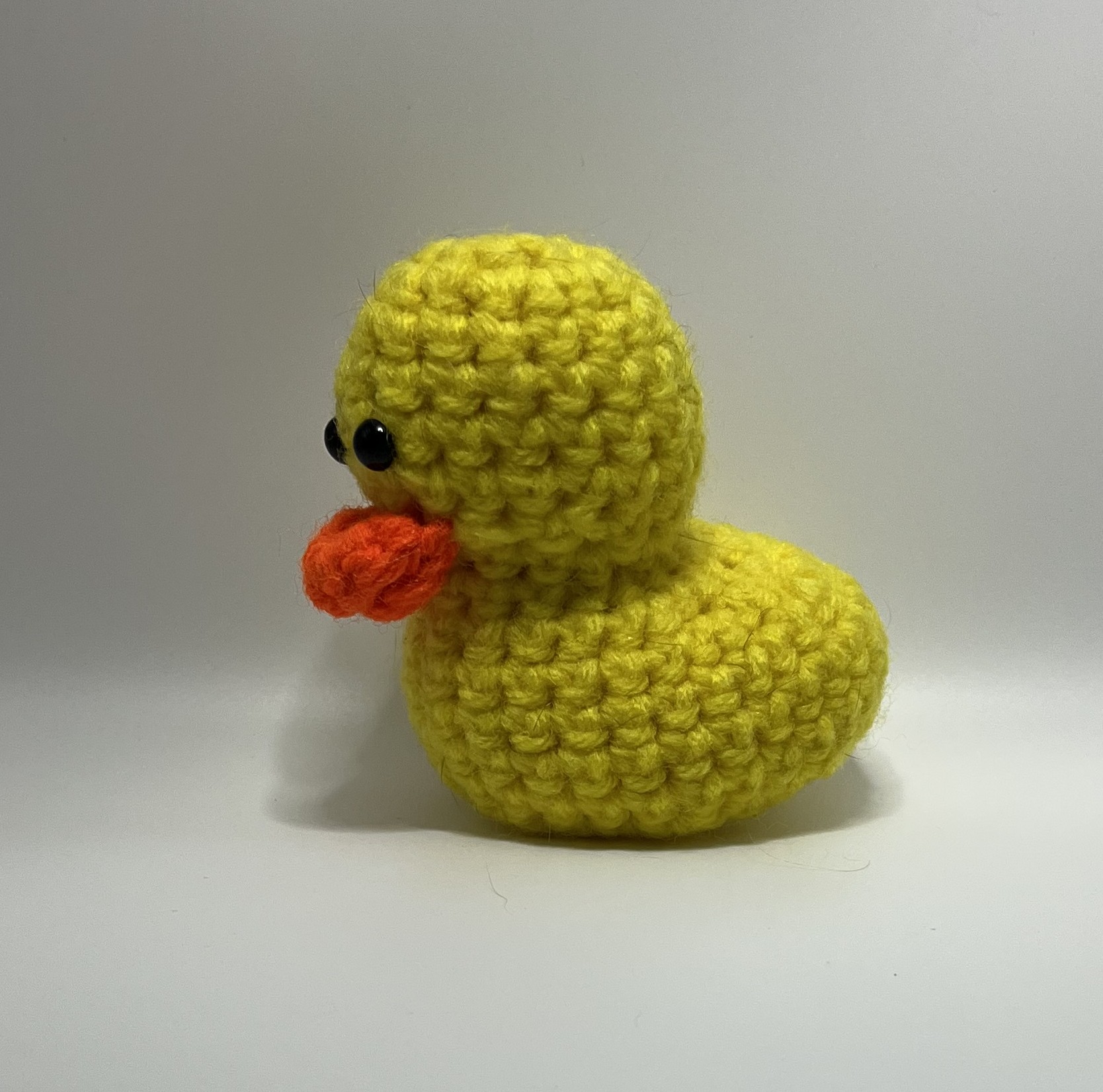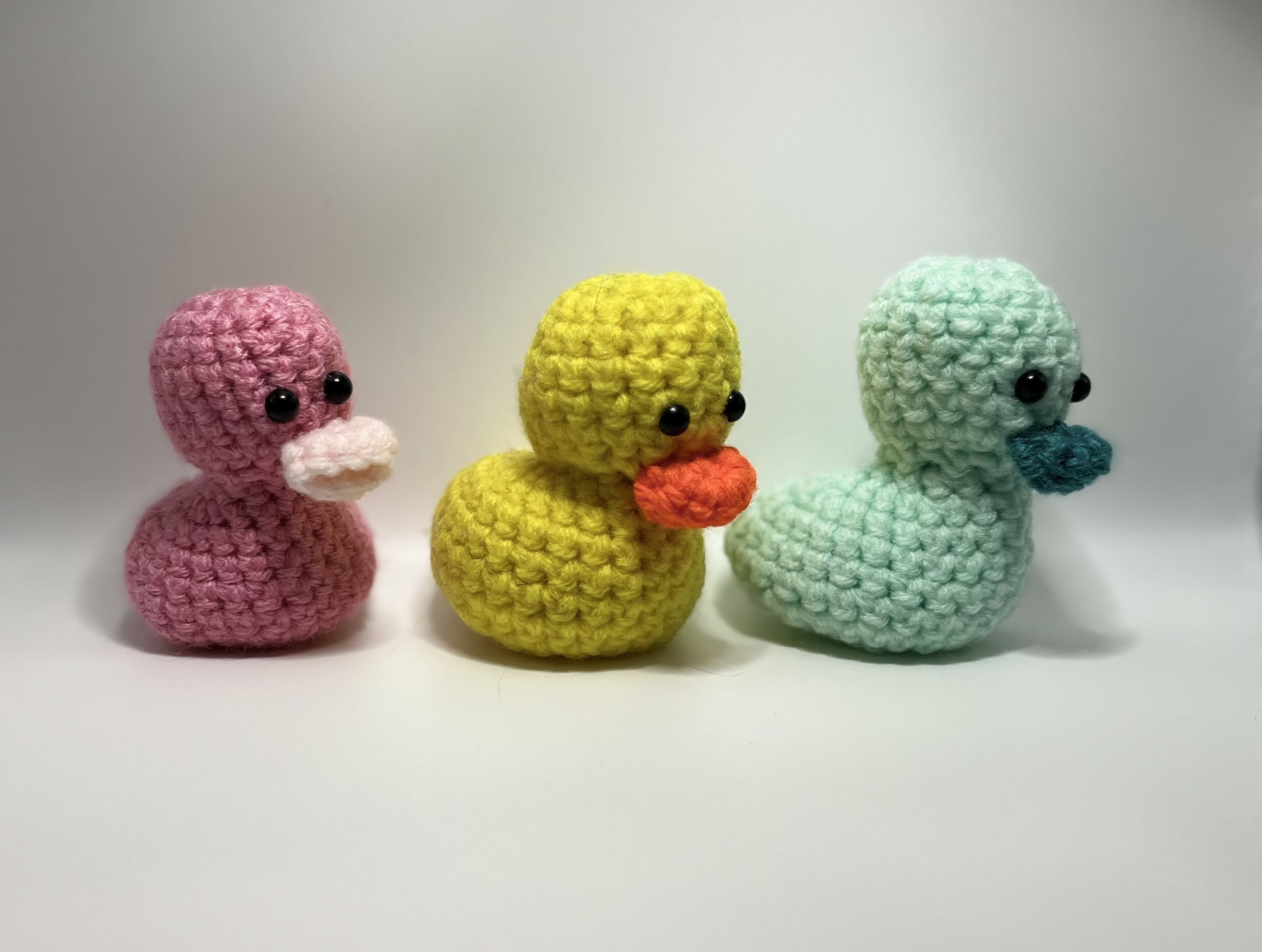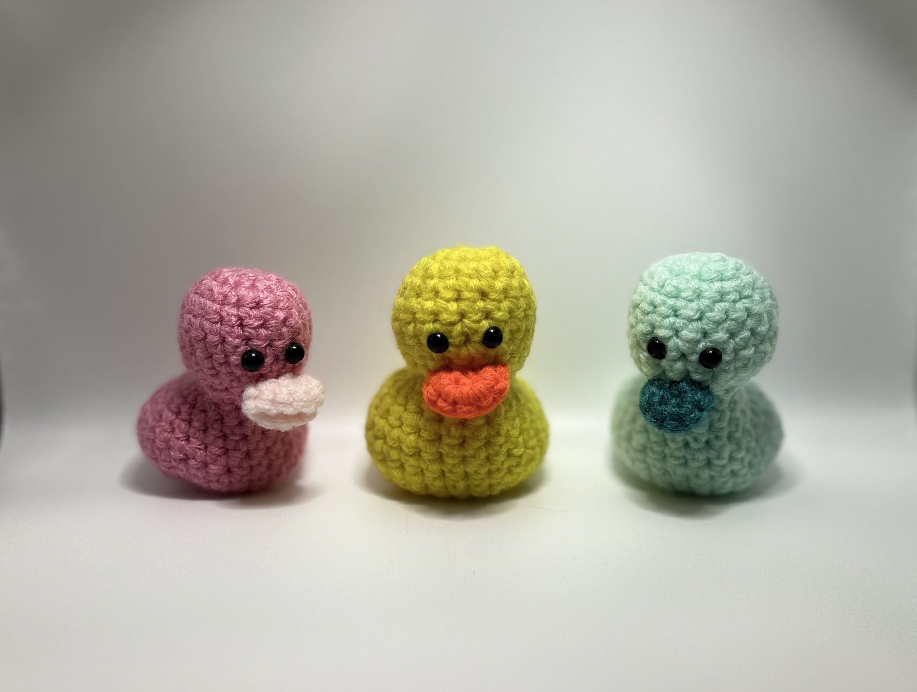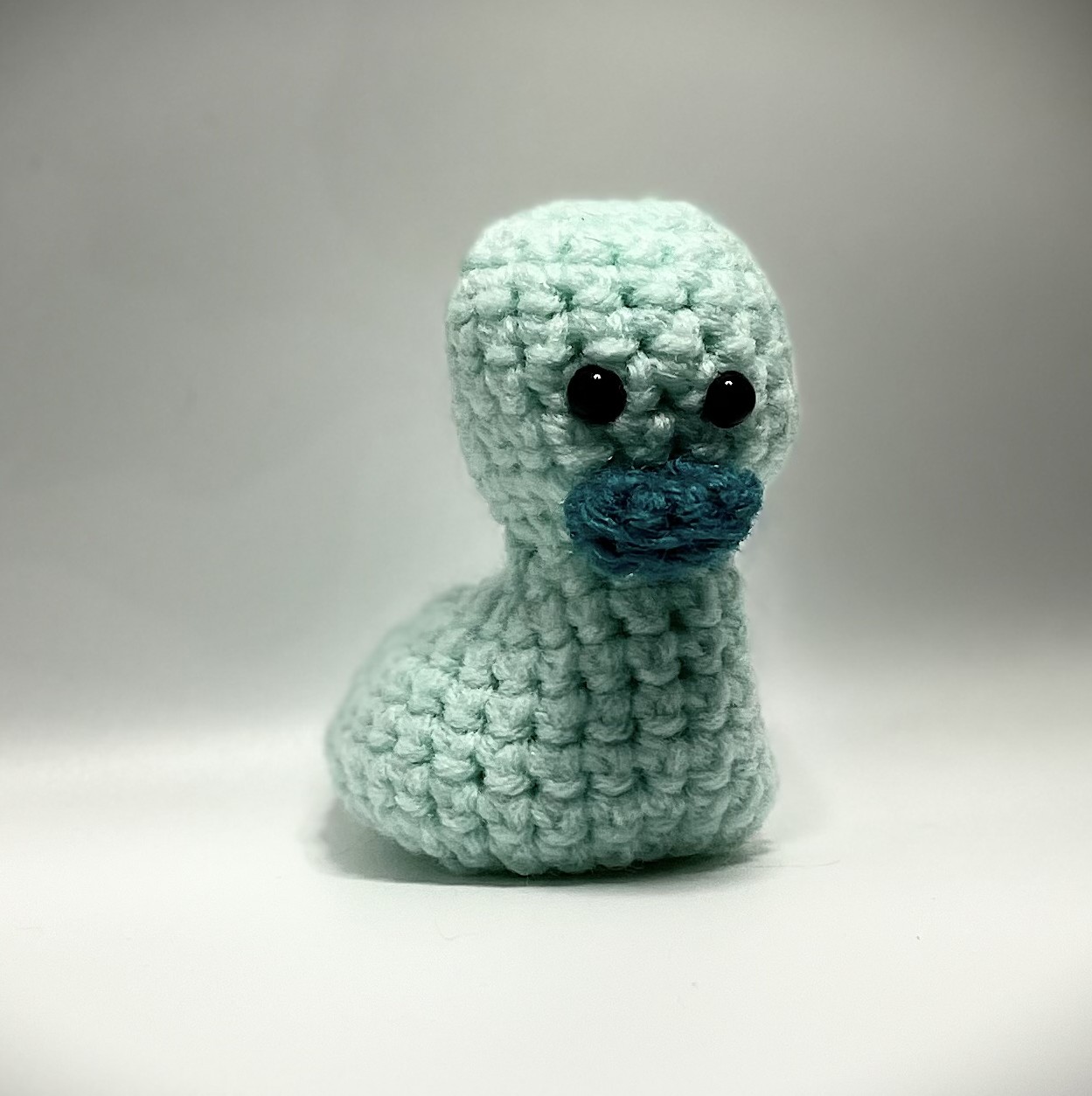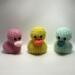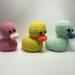 These rubber duck shaped birds will flock all over! They are made of acrylic yarn and safety plastic eyes. They are stuffed and can sit up on their own. They measure about 3 inches long, 3 inches tall, and 2 inches wide. What you see pictured is immediately available but can be made to order in any color combination in about a week.