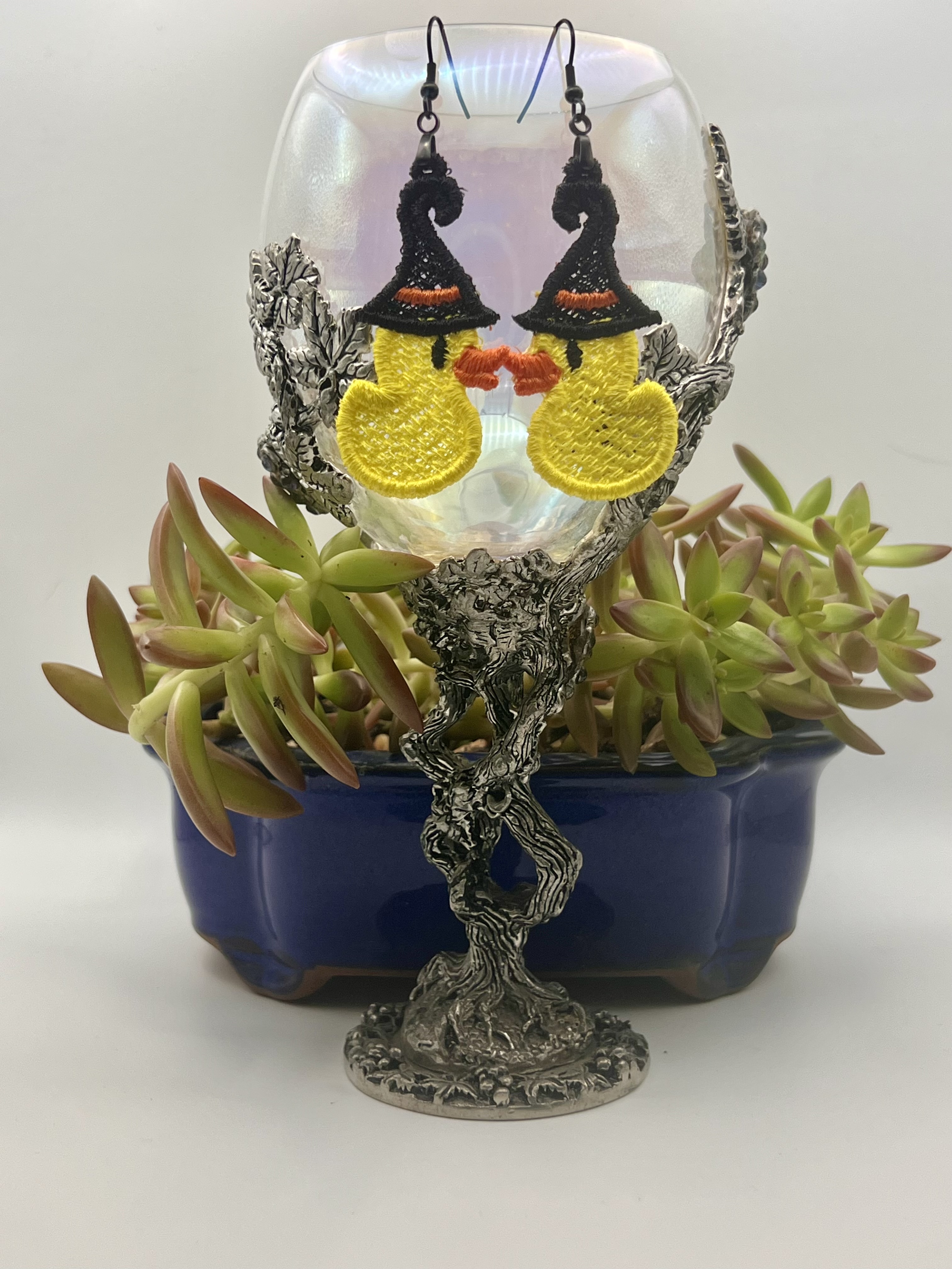 Rubber Ducky Witch Hat Free-Standing Lace Earrings – Handmade Halloween Jewelry
