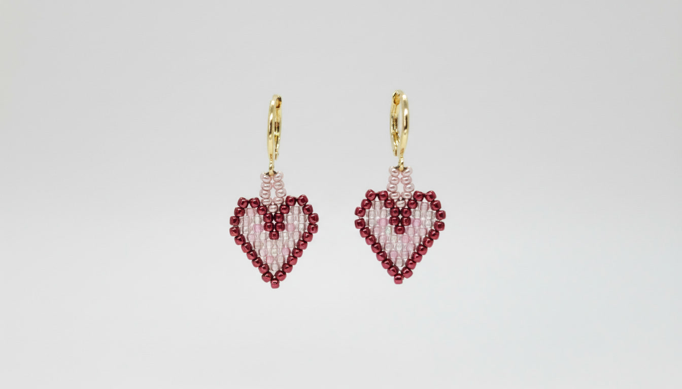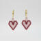 Ruby Halo Heart Earrings feature a metallic ruby-red border surrounding a soft pastel center.