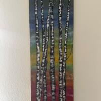 Who doesn't love plants??? Ruby and her background were created with many layers of paint. I begin with a base color, blue in this case and alternate layers of purple and blue on the background until I achieve the perfect texture and hint of bluish purple I desire. Ruby's yellow and green leaves are also many layers of color along with some pop of red. The pot and table are simple and fade into the background allowing the pure joy of Ruby to exude with happiness. No frame is necessary, as the sides are painted and she is ready to go. Ruby just can't wait to be hanging in your favorite little corner.