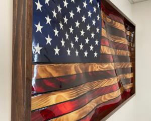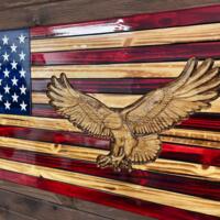 Please Note: Purchasing any custom work that includes script, spelling, grammar or designs instituted and approved by the client, is the client's responsibility. If an error has taken place by the misinformation/approval of the client of work that has been completed and/or shipped, client will pay shipping/handling of repair or replacement and be responsible for material and labor cost of repair/replaced item(s). Please note most flags ship within 2-3 weeks however XXL, 3xl and 4xl Flags will more than likely be 3-6 weeks. XXL through 4xl flags are shipped in 2 pieces. Directions for the assembly included. Hangers on larger flags will not be pre installed so you can line them up with your wall studs. Each flag is made per order, please see shipping details for the estimated timeframe. Disclaimer: Yellowing of wood may naturally occur due to sap inside the pine. --Shipping labels are created on Fridays and will show as pre-transit until Monday.