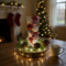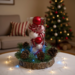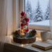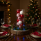 A clear vase is then filled with sparkling red-and-white ornaments and beads, adding festive color and shine. I weave battery-operated fairy lights throughout the arrangement, giving the entire piece a warm, inviting glow that brings the holidays to life.