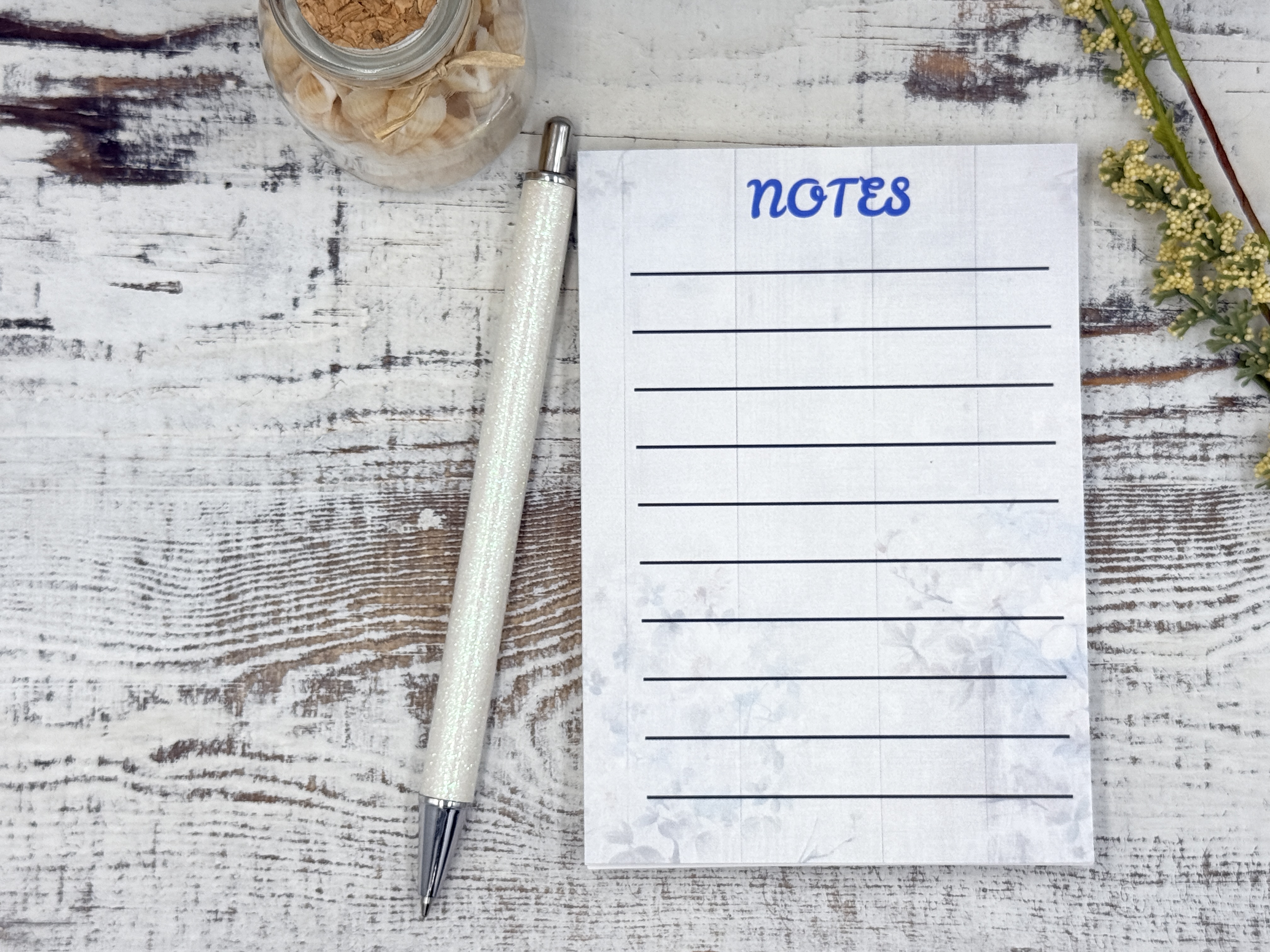 Bring a touch of rustic charm to your everyday notes with this 3.5 x 5 inch unlined floral notepad. Featuring soft florals set against a distressed wood background, this design has a warm farmhouse feel that never goes out of style.