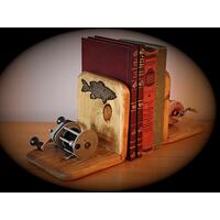 Bring your love of fishing into your home or cabin with this handcrafted set of Clearwater River bookends. Each set features vintage-style fly fishing reels on the base and a rustic bass accent at the top, creating a functional piece of décor that’s as unique as it is practical. Perfect for holding books, displaying on shelves, or gifting to the angler in your life.