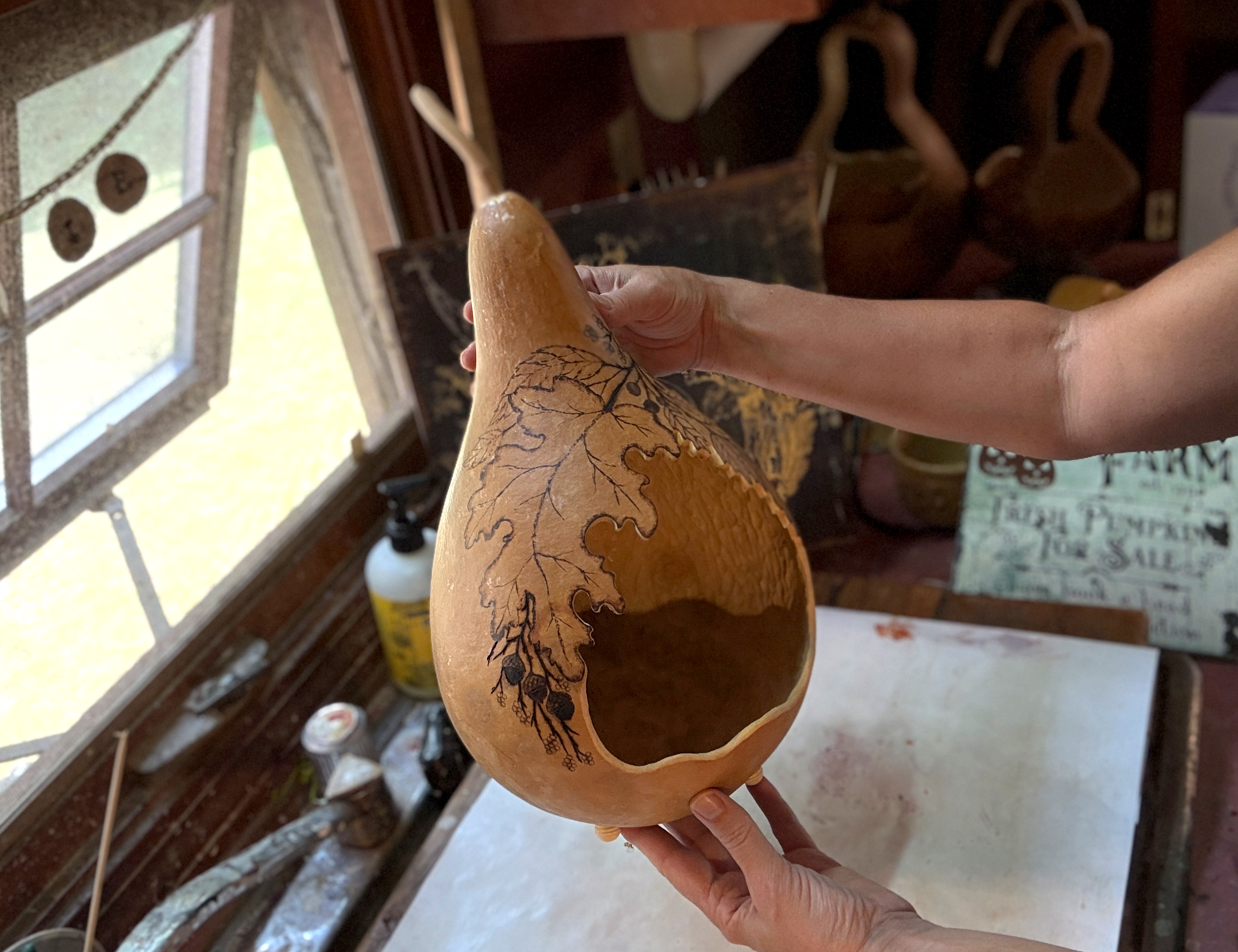 Each gourd is created through a detailed, hands-on process: