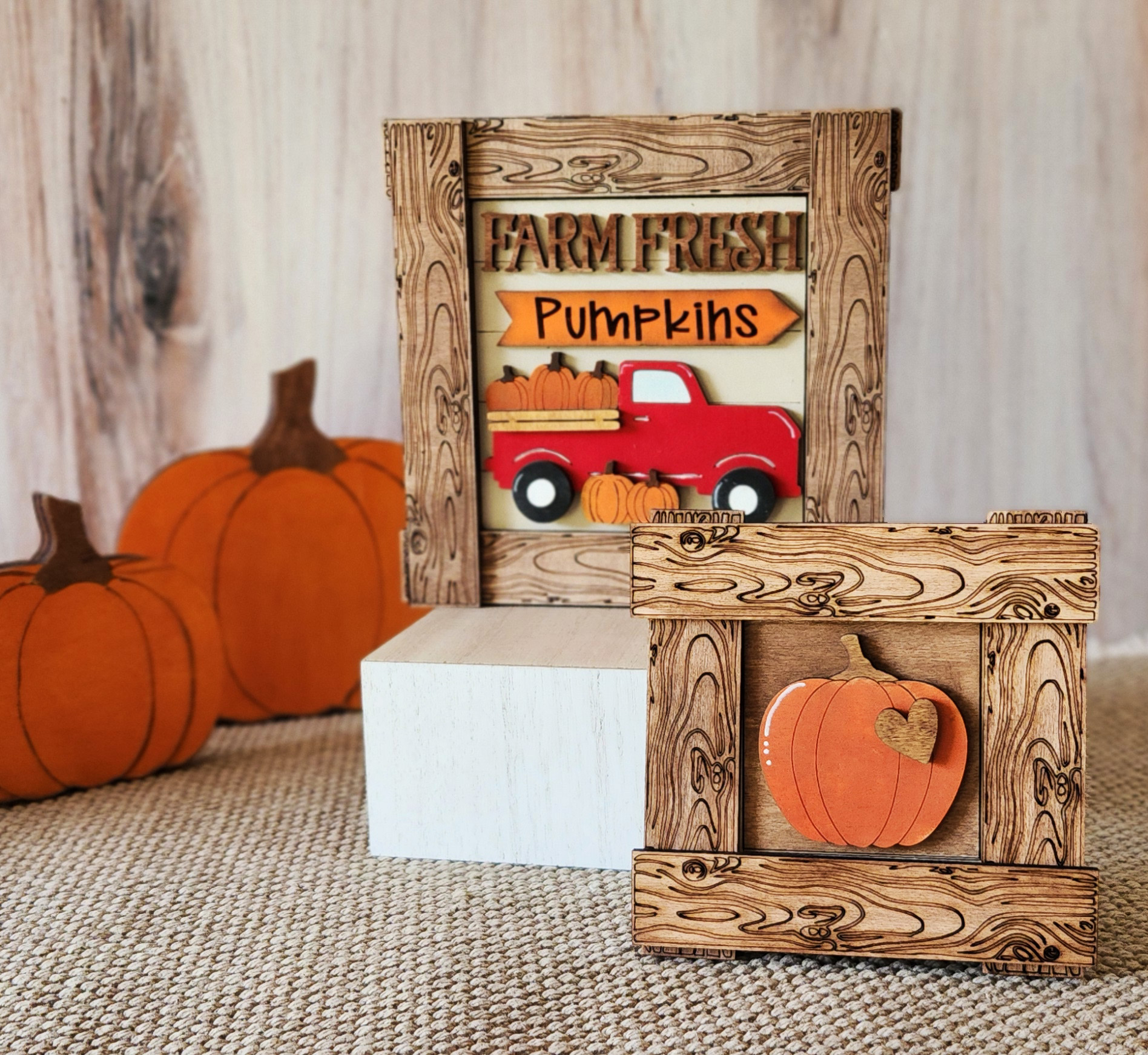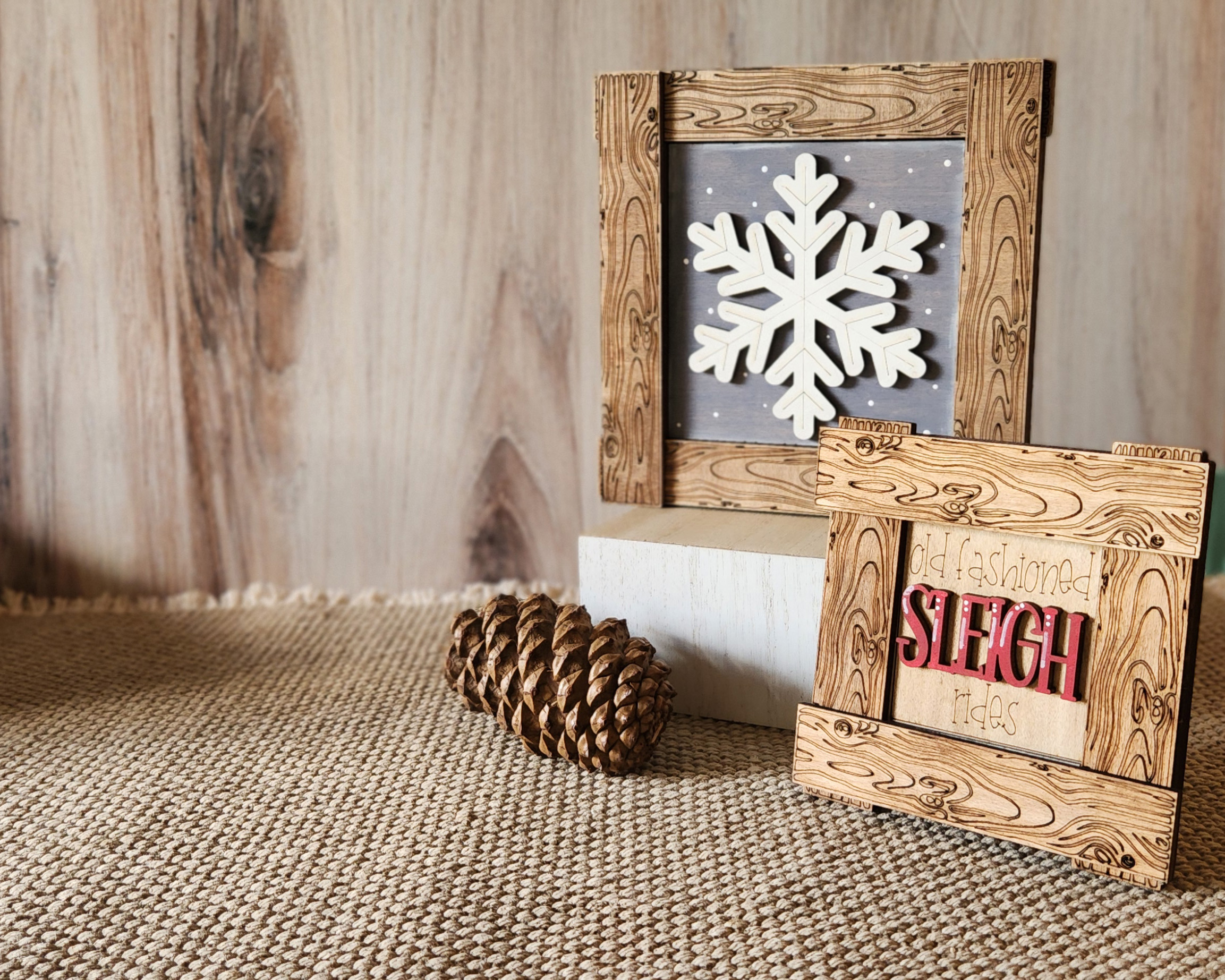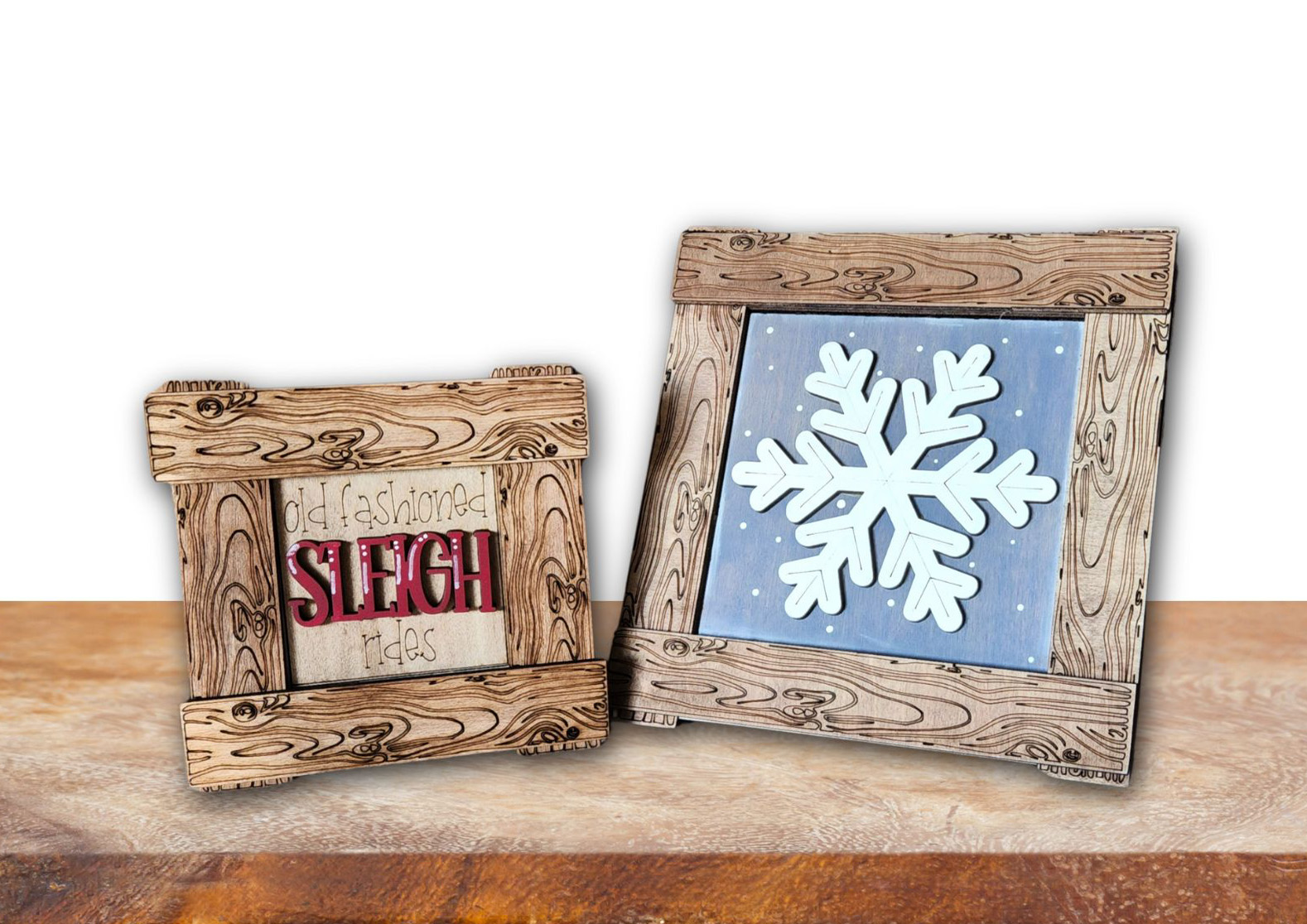 Add a touch of farmhouse charm to any space with our versatile wooden display frames. Perfect for showcasing your favorite seasonal inserts!