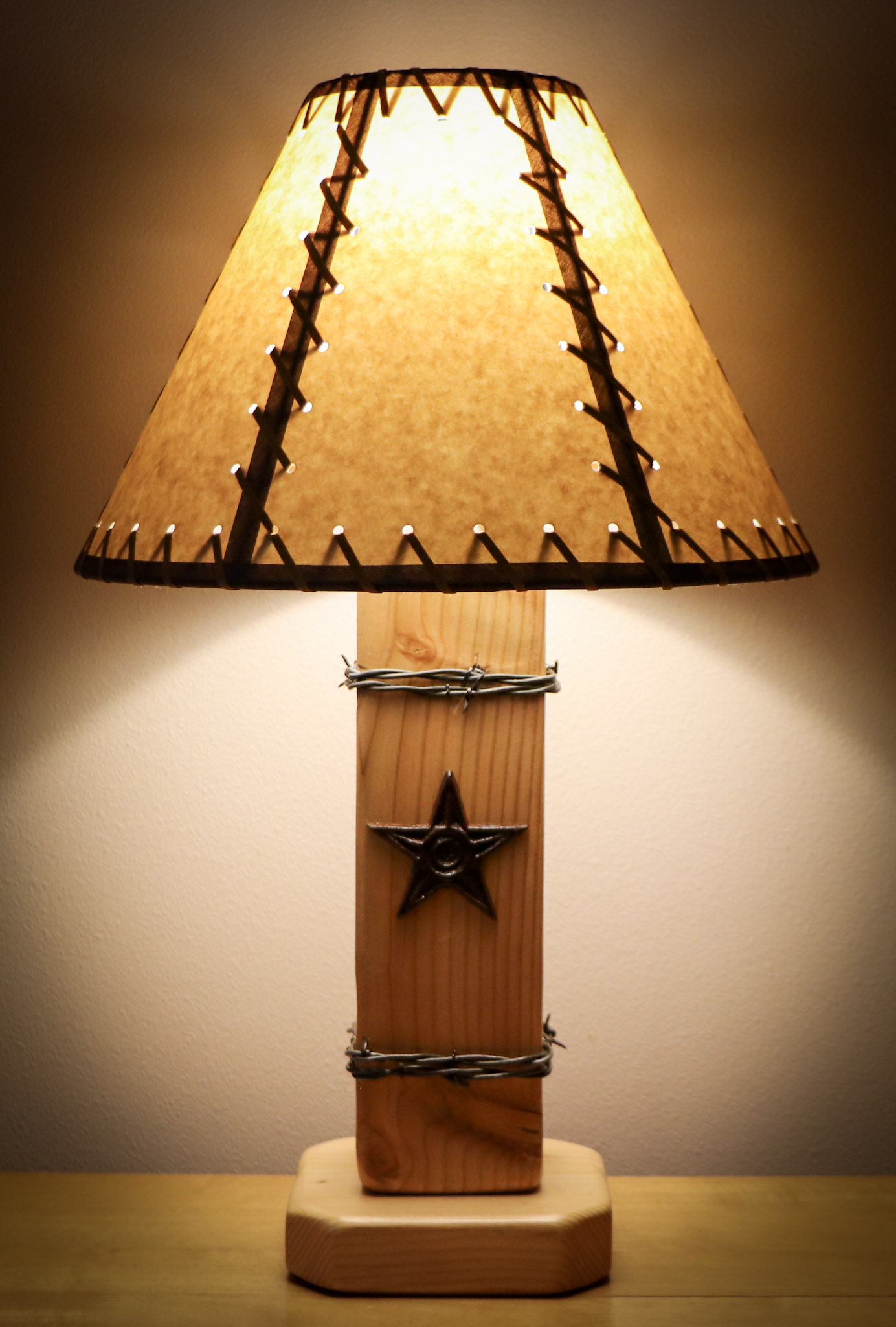 Bring a touch of Western spirit into your home with this handcrafted table lamp featuring both barbed wire and a bold Texas star accent. Built from a solid 4x4 wood post, the design blends rugged character with refined craftsmanship, making it a standout piece for cabins, ranches, or rustic-inspired spaces.