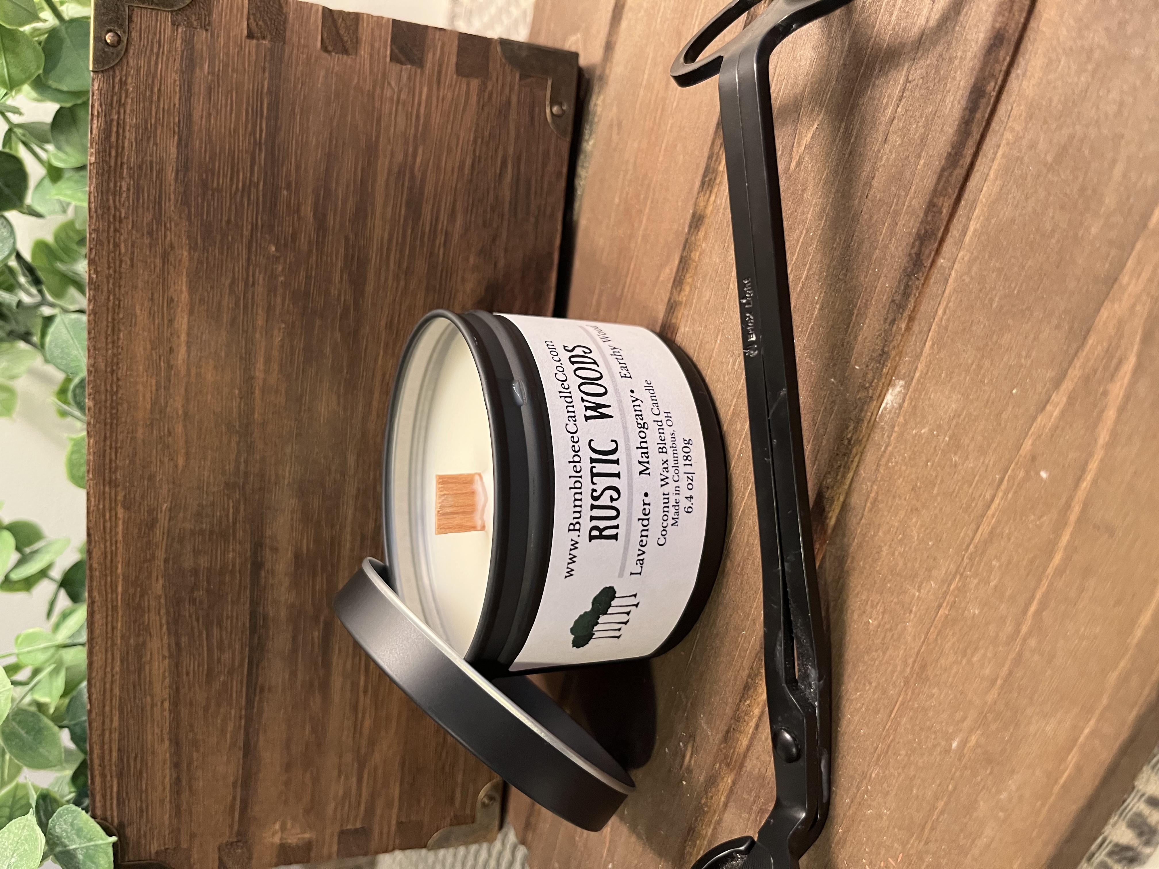 Hand-poured in a matte black tin, this 6 oz candle is crafted with a clean-burning coconut soy wax blend and a natural crackling wood wick that adds a cozy, fireside ambiance. The fragrance opens with the rich warmth of mahogany teakwood, softened by calming notes of lavender, and grounded with an earthy wood undertone for a rustic yet refined scent experience. Perfect for creating a relaxing, nature-inspired atmosphere in any space.