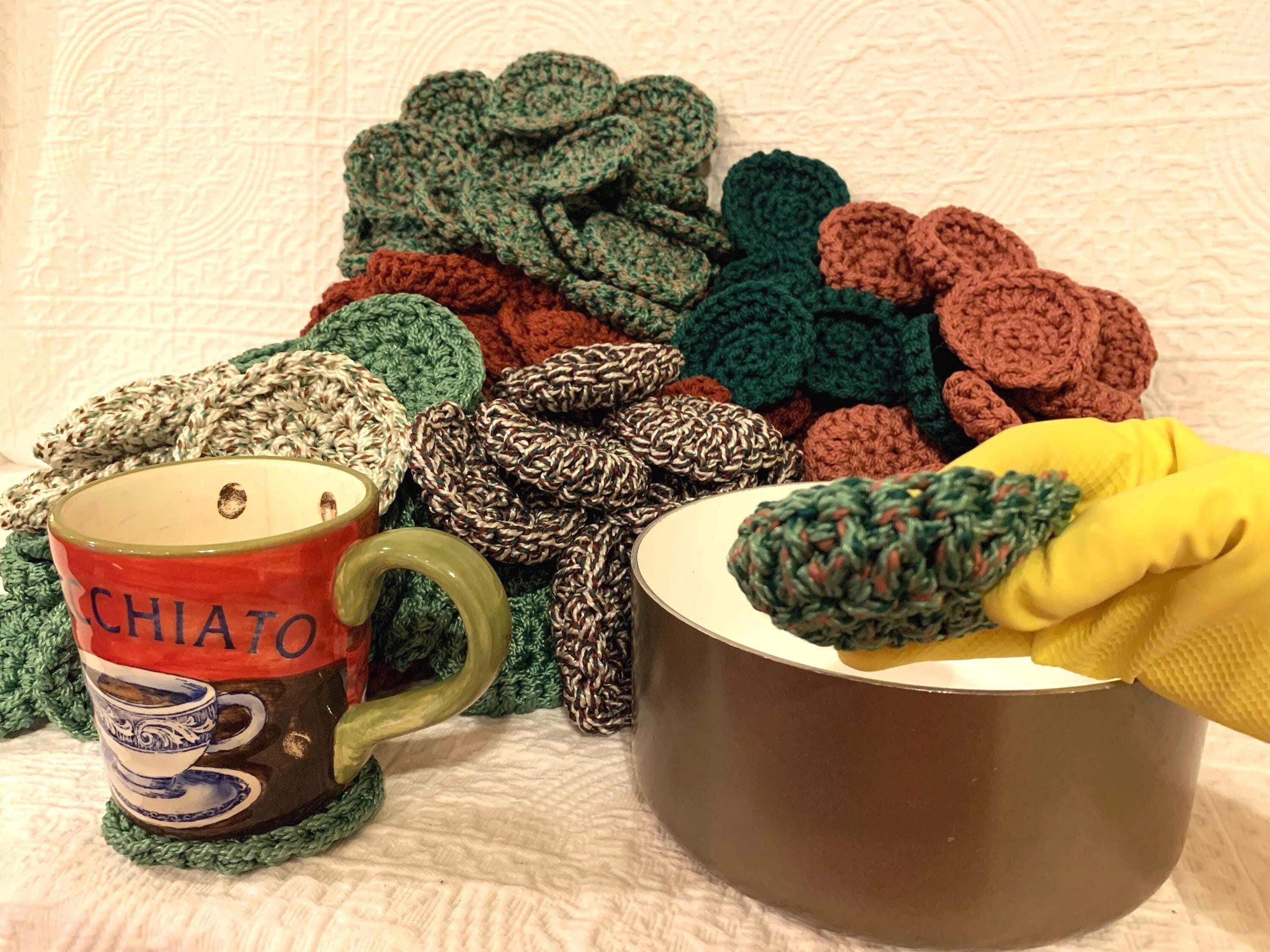 From cute sage, green, and coral decor to being a reusable mold and mildew resistant tool against the most stubborn messes, these handmade scrubbers will make your home life easier. The economical durability and versatility of this multipurpose product is what compels many of my shoppers. Mix and match your own set of scrubbers / coasters. Photos of other scrubbies are shown in this listing as examples. This listing is priced per each sage, green, and coral scrubby / coaster. Should you need any additional quantities, please let me know as I have some cross posted.