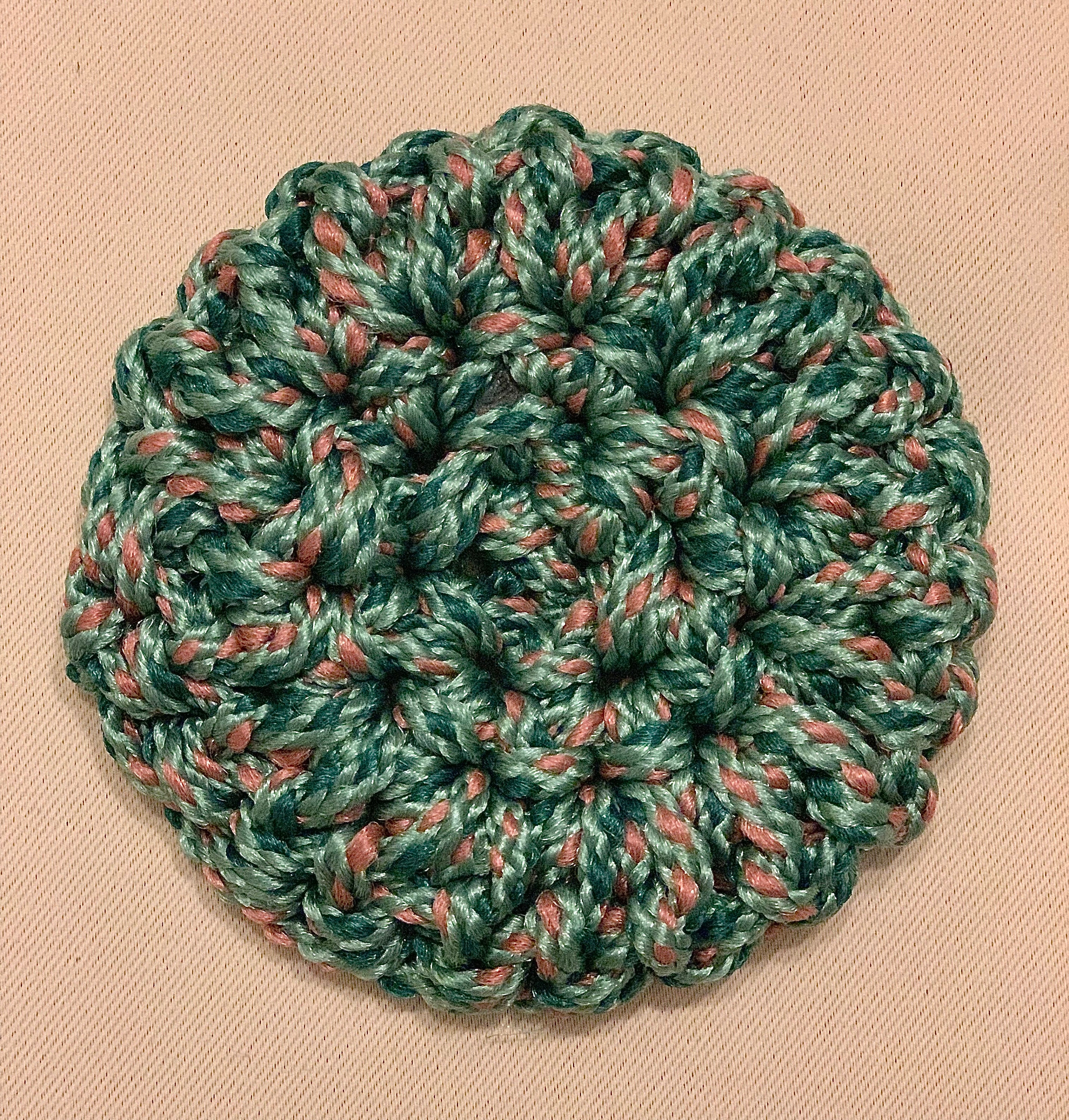 These amazing scrubbers are flexible and easy to reshape for your varied purposes. Simply curve the edge up for a good grip when cleaning or press flat to use as a coaster. They are all similar, yet due to the character of this freestyle creation some slight variances may be present; some lay flatter, while others have a more natural tendency to curve at the edge.