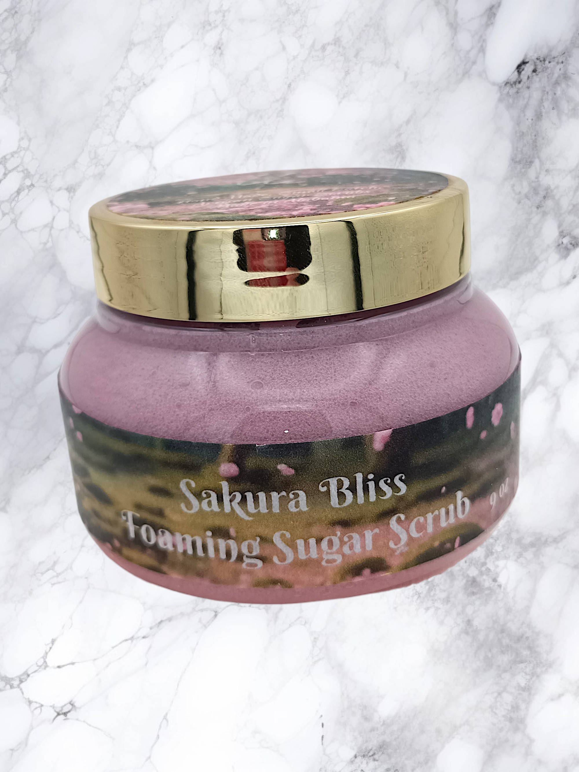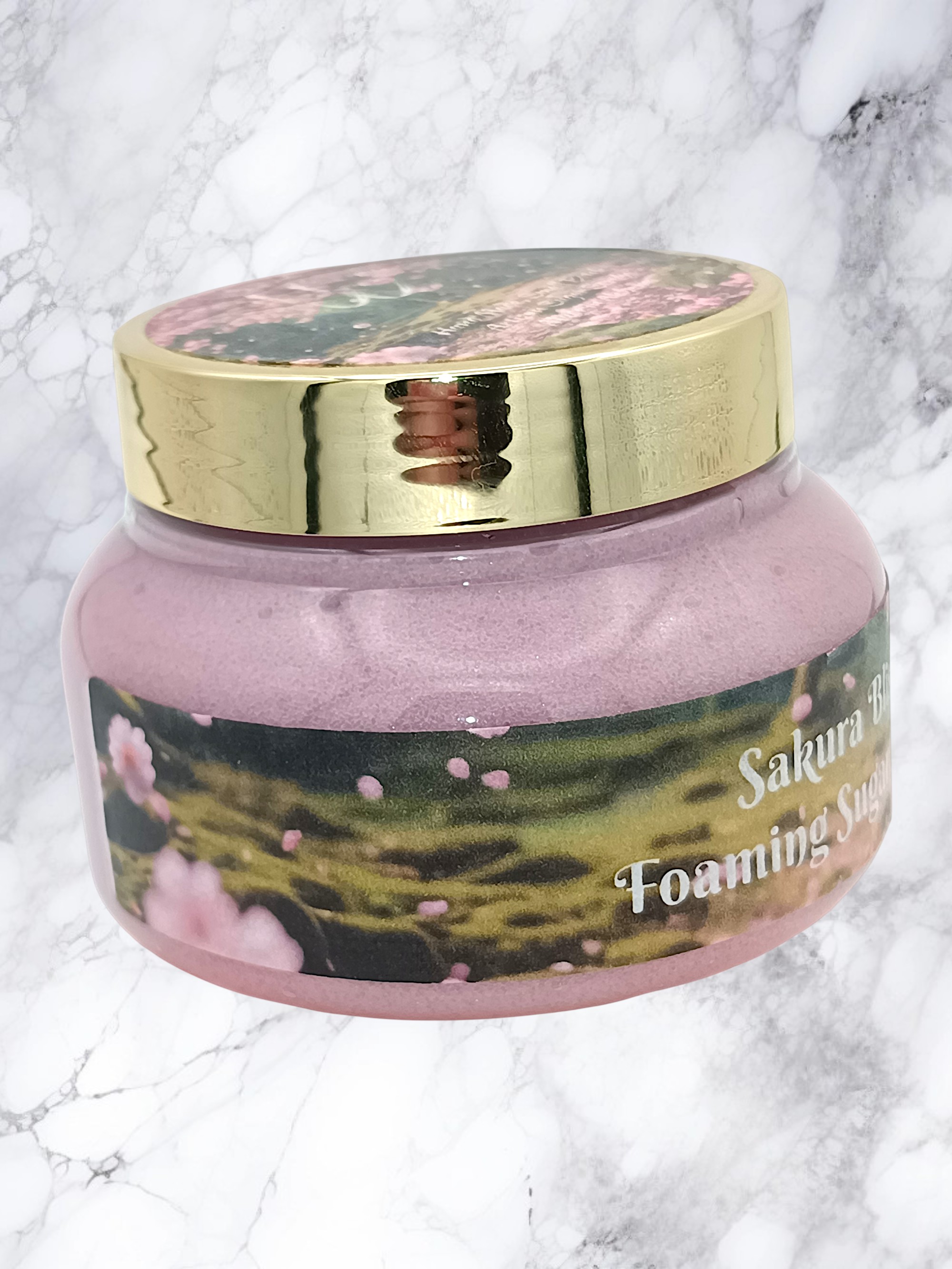 Sakura Bliss Foaming Sugar Scrub – Cherry Blossom Indulgence