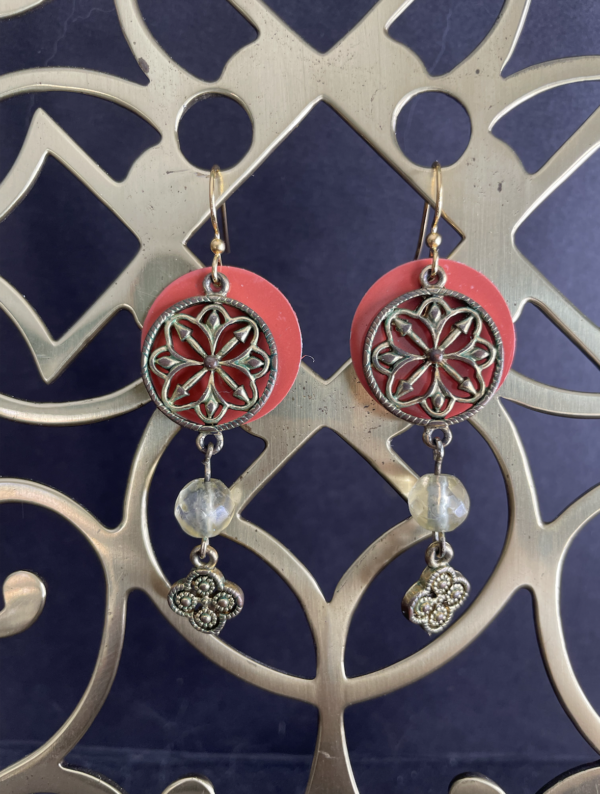 Salmon Backed Medallion Tin Earring