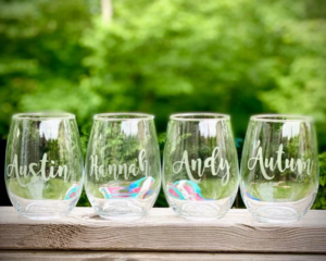Personalized Etched Stemless Wine Glass- One Name/Word Great ...