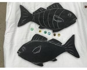 1. Purchase the Wood. 2. Cut the shape out with a jigsaw. 3. Sand the edges. 4. Route the edges and sand again. 5. Cut out the bottom piece from 1/2" wood and attach the made in USA ball bearing swivel that is very strong. 6. Sand bottom, route and drill the hole for attaching screws 7. Prime all pieces of wood. 8. Attach the two parts together, swivel in middle. 9. Attach, then paint the design 10. Coat with 2 coats of marine Urethane 11. Coat with two part epoxy resin. Blow bubbles out with torch. (See video in shop updates) 12. Put lid on, cross fingers and toes for good luck. 13. Hope it came out nice. and we don't need to coat it again. Are they perfect? Sometimes we get lucky. 14. After it dries, we remove the drips from the back, (I call them baubles) with a grinder. 15. The bottom paint is touched up. The piece is signed and dated and wrapped up in a pizza box for shipping.
