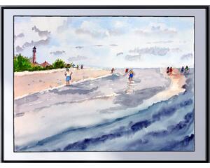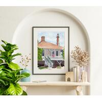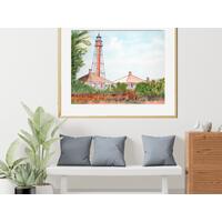 Sanibel Florida Lighthouse and Keepers House Watercolor Painting