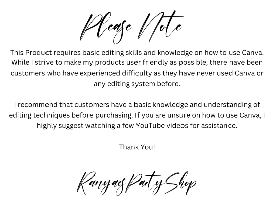 You will receive a PDF download file after purchasing. This PDF includes the monitored link to edit the file. Please do not share the file or link included.