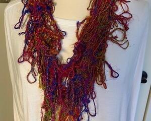 Working with color and textures of different yarns inspires me to create items that are truly one of a kind. I love it when my customers come back again wearing an item they bought to show it off!