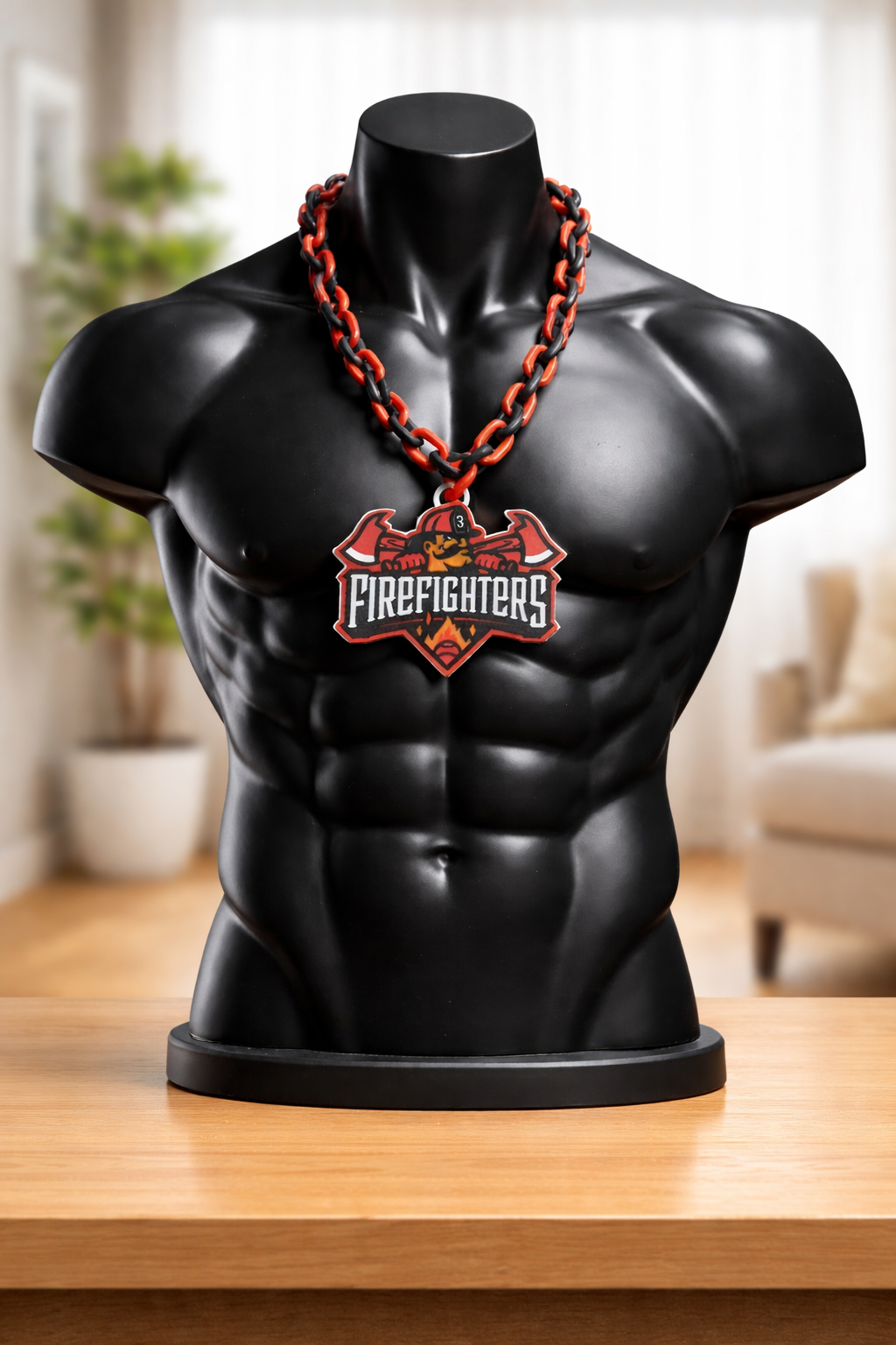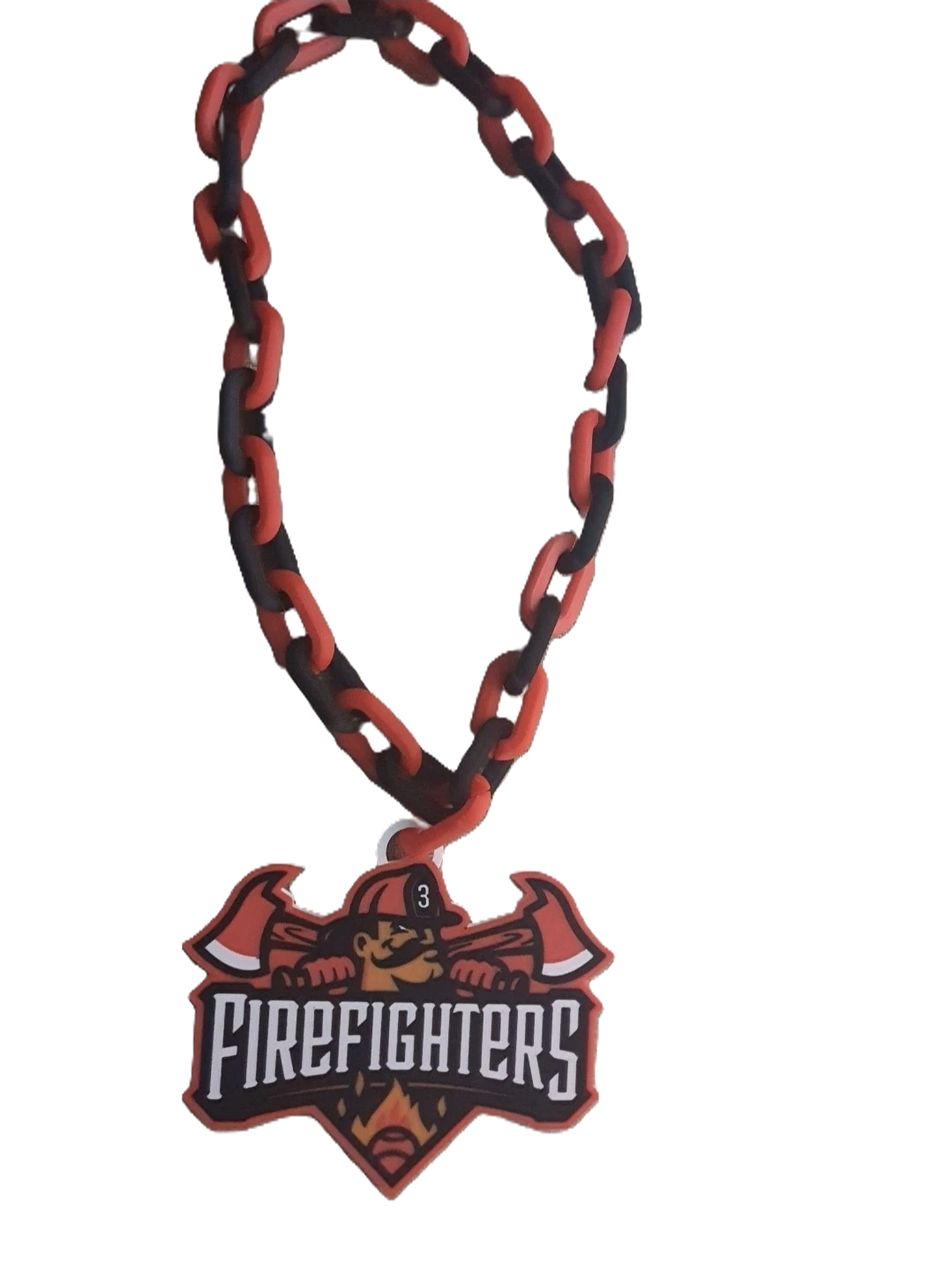 Description: Savannah Fire Fighters Baseball Fan Rally Hype Chain Necklace Pendant. Chain Length 32" Pendant Size 6x6.5"
