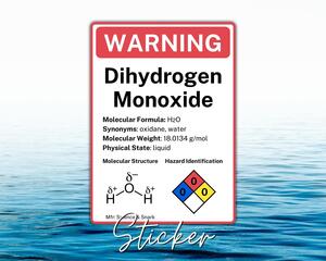 Dihydrogen Monoxide Warning Label, Funny Stickers, Water Bott...