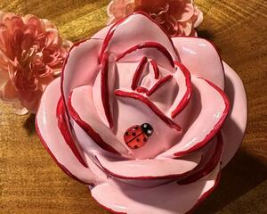 The jar was made in my mold with colored, powdered resin. It was then decorated with faux pearls and a flowered sticker sticker and sealed.