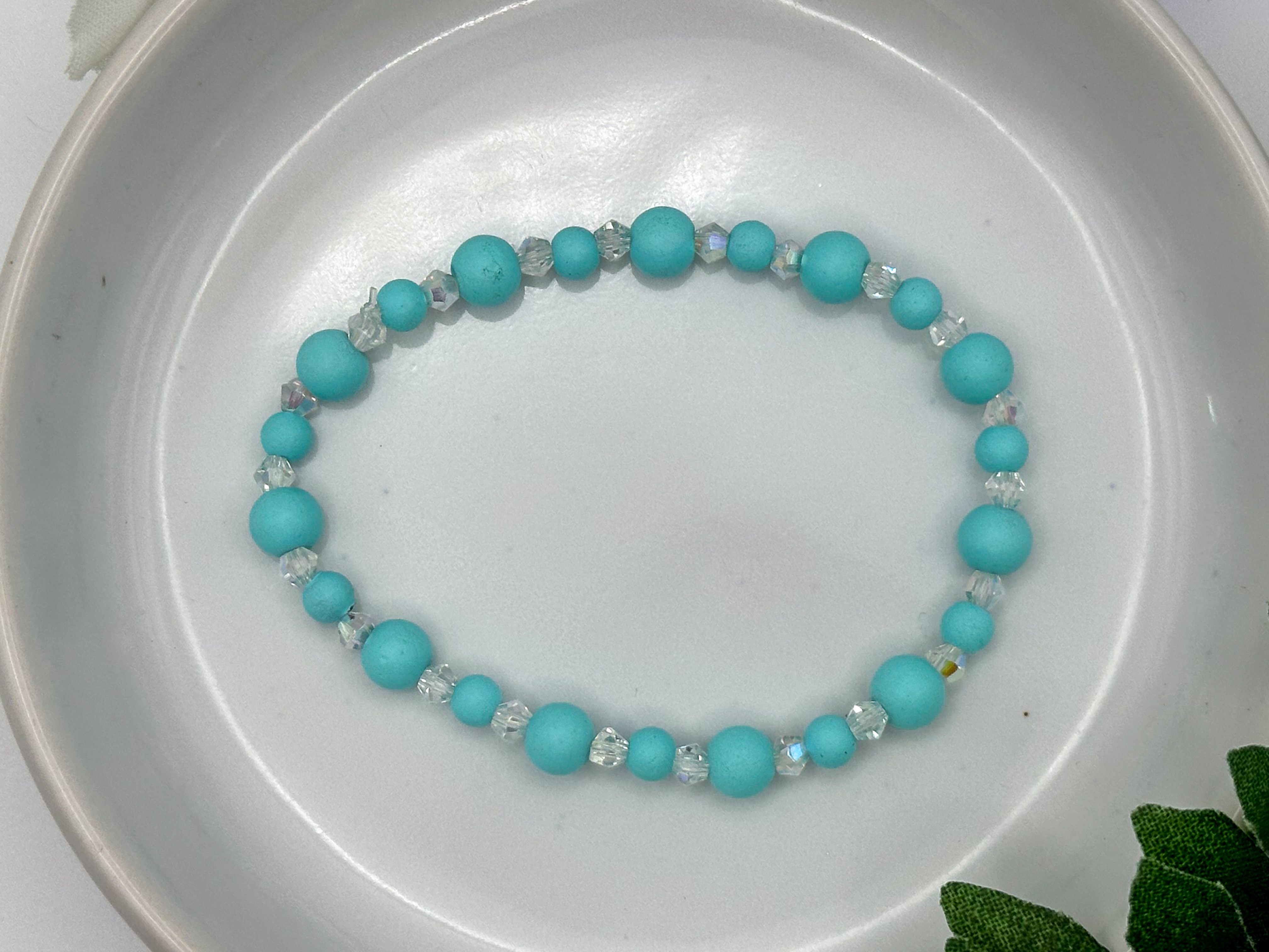 Sea Breeze Sparkle Bracelet – Soft Aqua Beads with Ice‑Clear Crystal Accents
