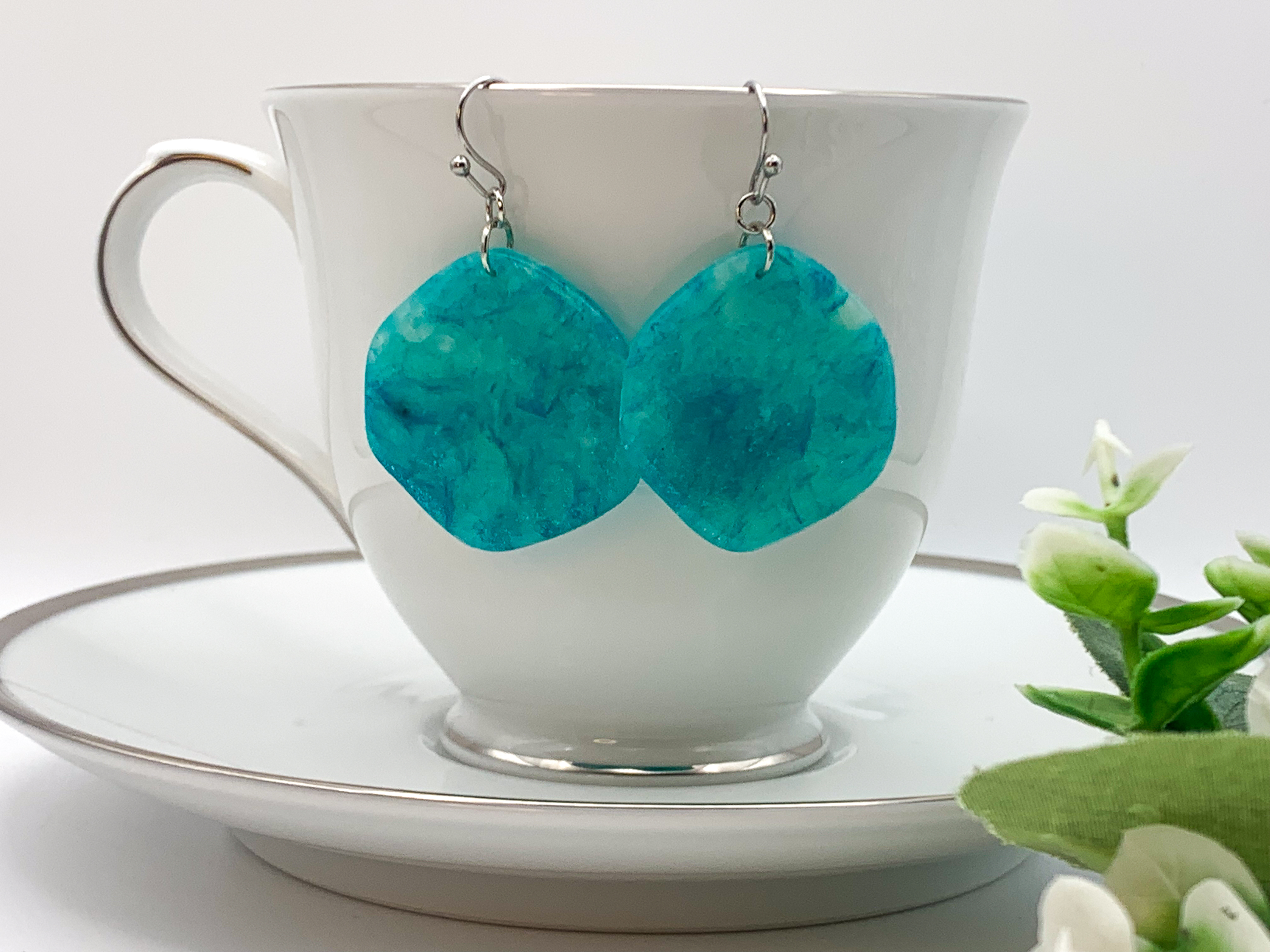 These aqua-toned earrings mimic the look of sea glass with a soft, marbled finish. Perfect for beachy vibes! ?