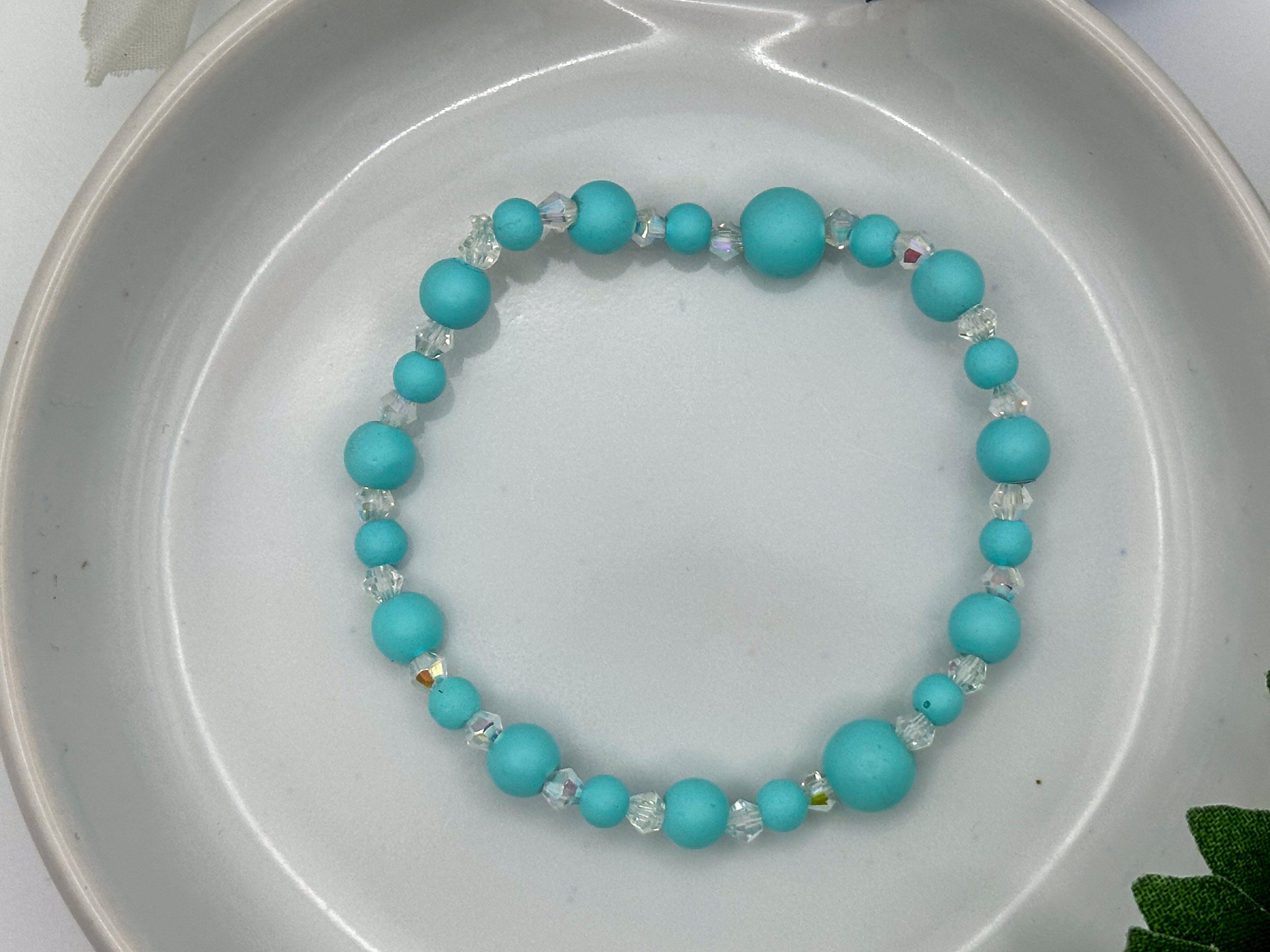 Sea Mist Path Bracelet – Soft Aqua Beads with Clear Crystal Highlights