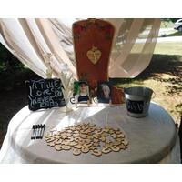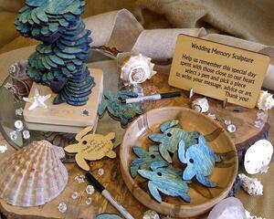 You and your guests will love this stunning sea shell themed guest book! Available in 2 styles, this is a frameless charm drop sea shell shaped alternative guest book with assorted charms for your guest to sign. Assorted charms include hearts and ocean-inspired shapes, including starfish, conch shells, sea horses and scallop shells.
