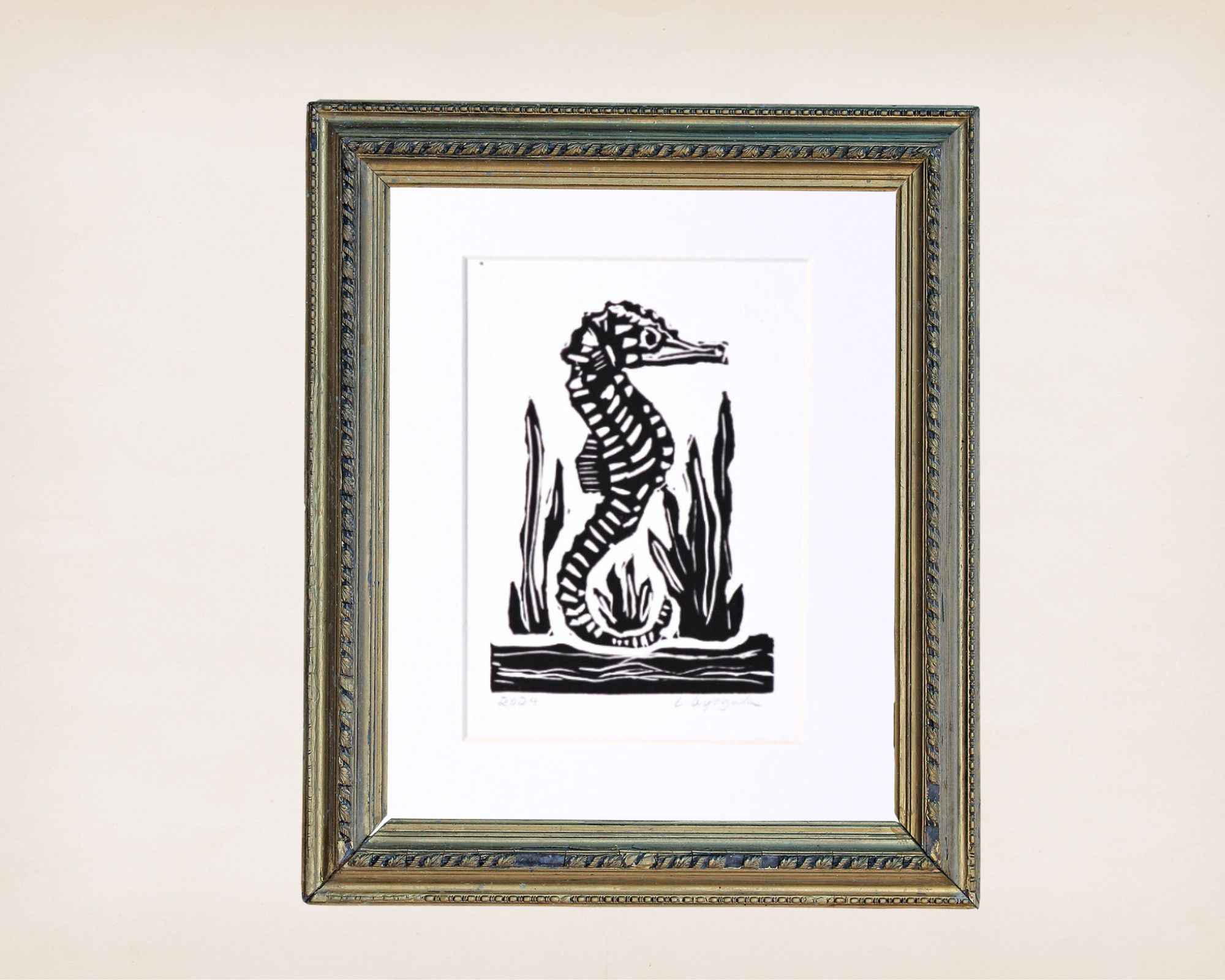 This cute Seahorse linocut print is a perfect little art piece for any child's room!