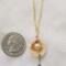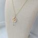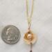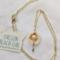 This dainty little Seashell holds a Freshwater Pearl with Crystal accent beads. The shell is approximately 1/2" in diameter. From the top of the bail to the bottom of the chain that dangles from the Pearl is approximately 1 1/2". The delicate 2 mm beveled gold-plated chain is approximately 16 1/2" long, with a 1 1/2" extender and is finished with tiny crystals. A beautiful delicate addition to any outfit.