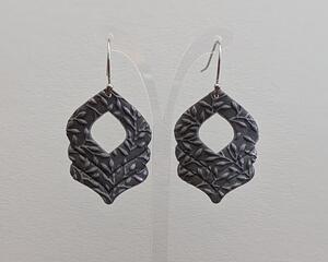 Mokume Gane Open Teardrop Earrings: lavender, aqua, blue, silver