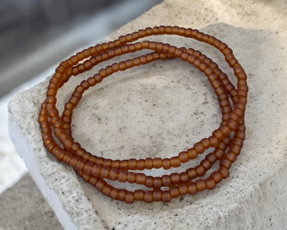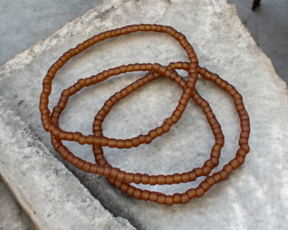 The Dyna-Mites™, glass, transparent matte root beer glass round beads are 6/0mm.