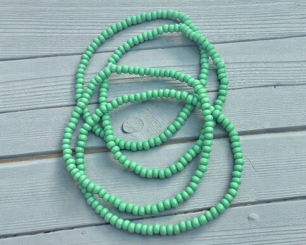 Add one or more of these handmade opaque mint green seed bead bracelets to your stack.