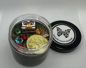 15oz of bubble gum scented pink and purple sensory rice. Inside you will find some fun little toys. There will be some miniature brand toys, charms, gems, fidgets and a cute ring. This will also include a wooden spoon!