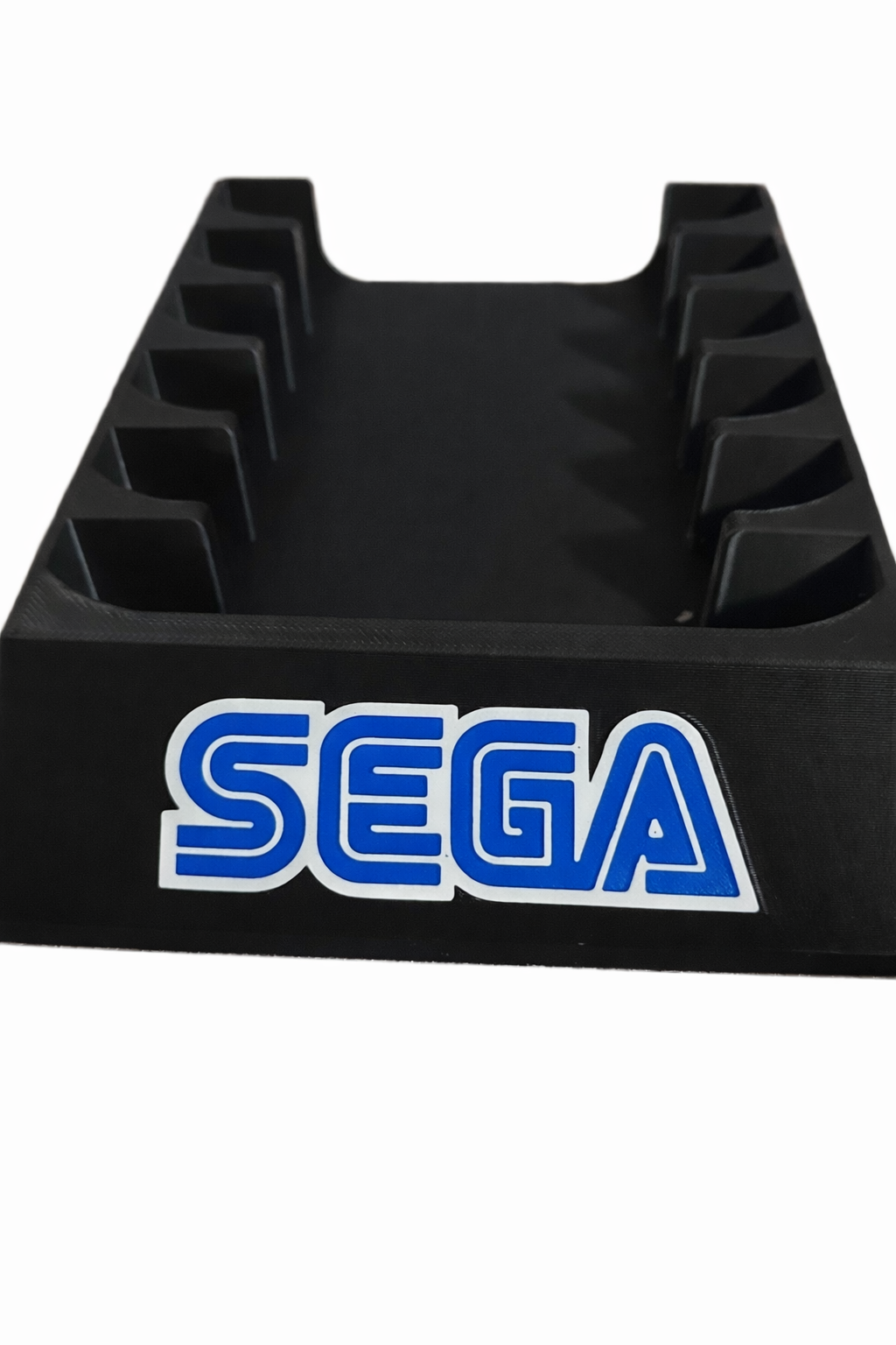 Description: 3D printed cartridge display stand designed to organize and showcase game cartridges with angled slots for easy access and secure placement. Durable construction with a clean, retro-inspired design that fits well in gaming collections, shelves, or display setups.