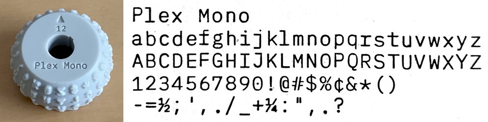 Plex Mono is the fixed width version of IBM's Plex font. I thought it would be fitting having it available on the Selectric, at last.