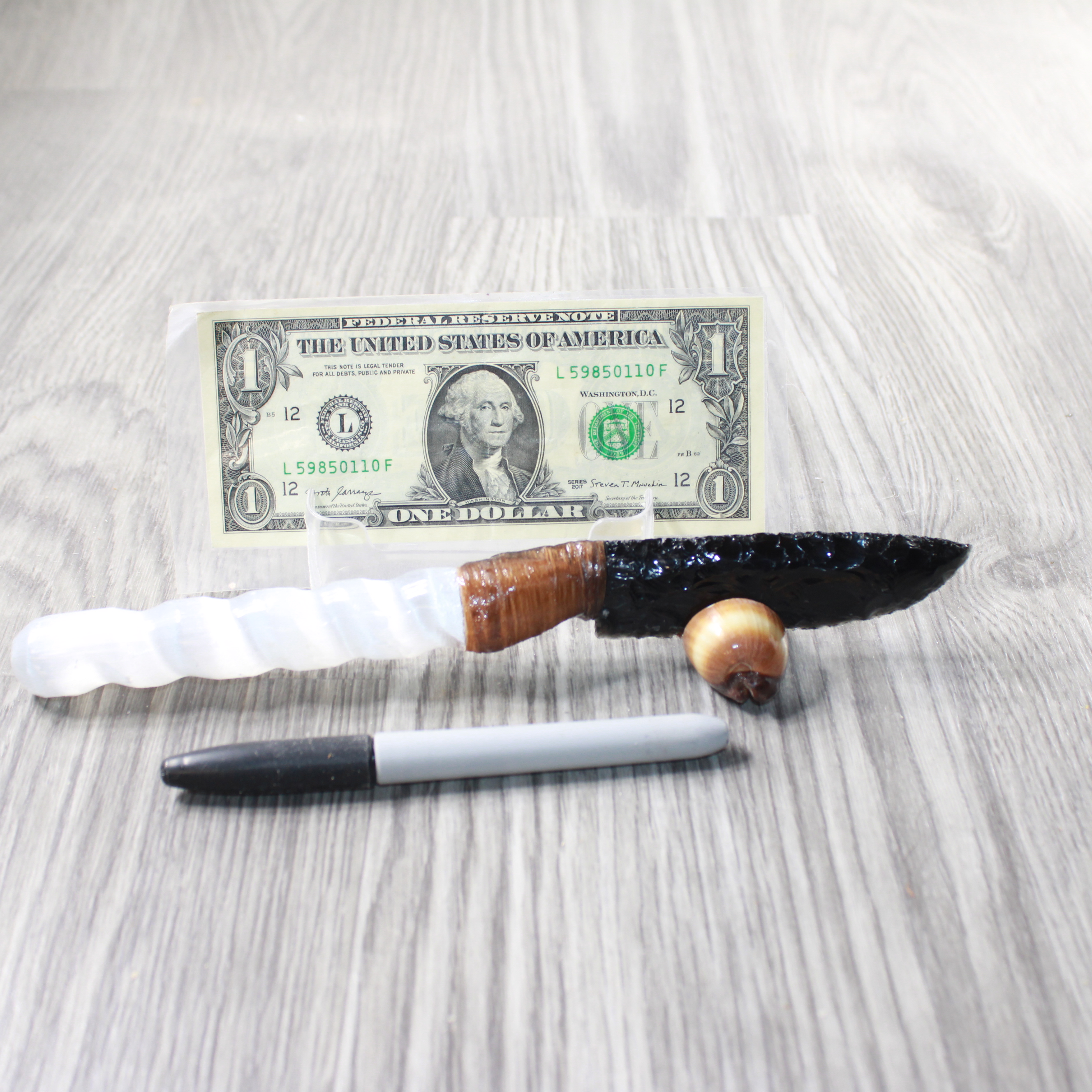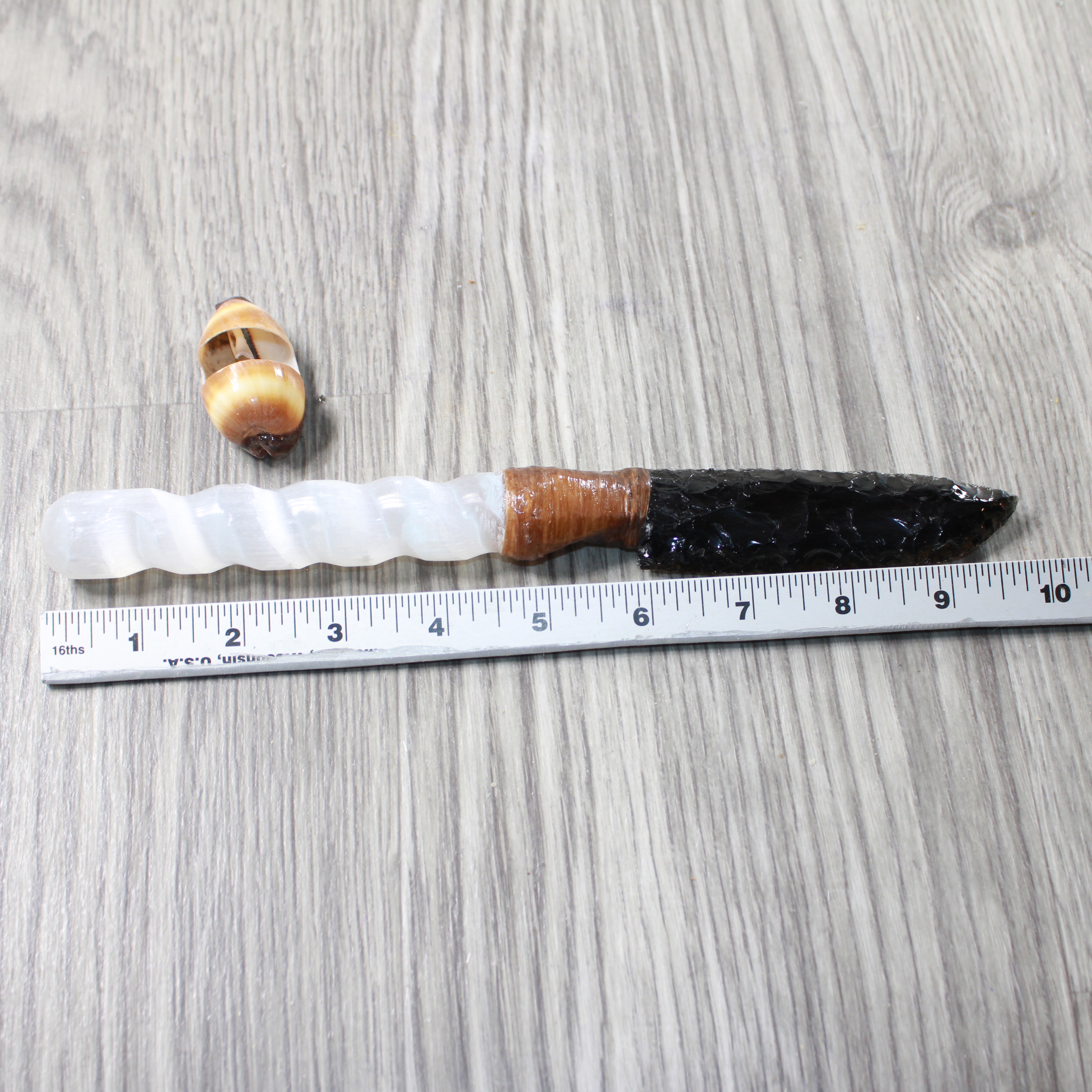Selenite Spiral Handle Obsidian Blade Ornamental Knife #0259 Mountain Man Knife